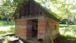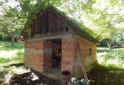 V Blízkosti domu je postavený murovaný domček na odkladanie náradia, dreva.