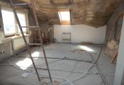 Betónovým schodiskom sa vchádza do nadstaveného podkrovia, kde sa nachádzajú 2 podkrovné miestnosti. Väčšia miestnosť má približnú rozlohu 10x 6m a menšia 10x5m.