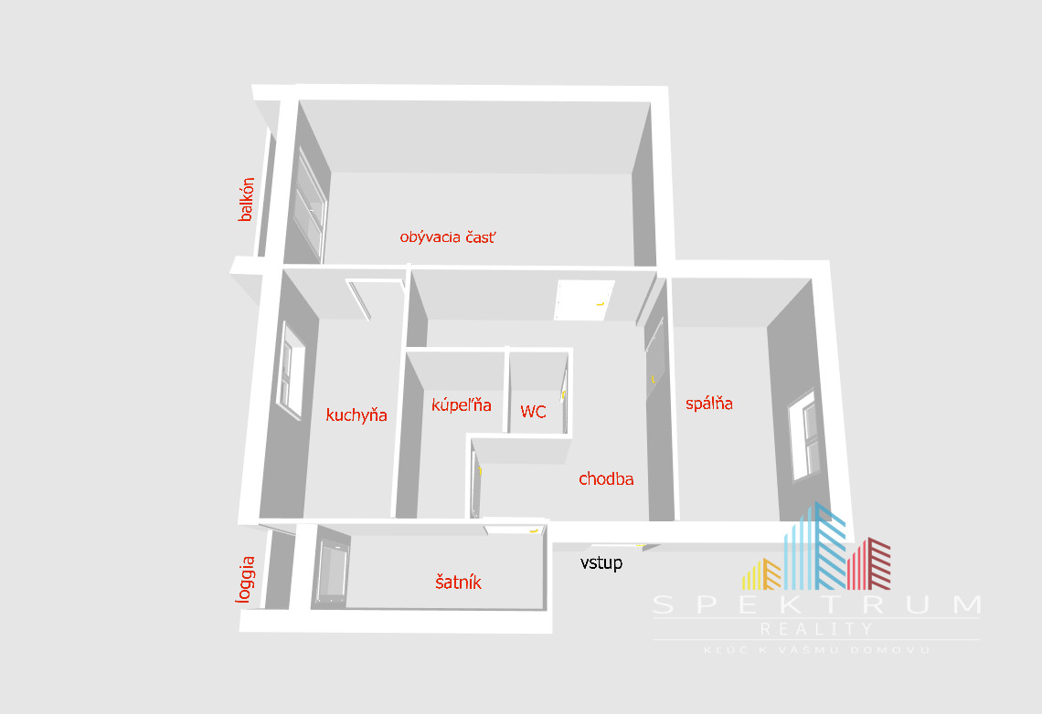 K bytu prislúcha balkón, loggia .