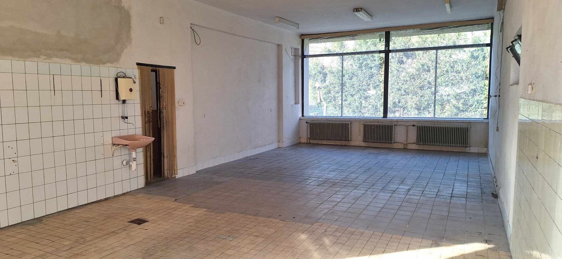 Dispozične pozostáva z veľkej vstupnej miestnosti o výmere 55m2 kde sa nachádza umývadlo , malá miestnosť napr. na kanceláriu a miestnosť kde sa nachádza WC , odkladací priestor a ďalší východ do dvora .