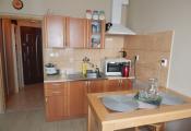 - Výbavou bytu je kuchynská linka na mieru s nerezovým drezom : ( dvojplatnička s elektrickou rúrou, digestor, mikrovlnka, chladnička s mrazničkou)