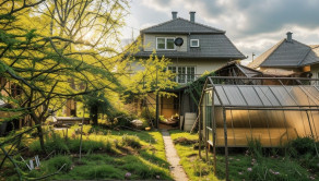 Na pozemku domu je garáž s montážnou jamou, skladový priestor a zastrešená hospodárska časť.