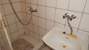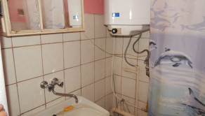 -V kúpeľni je umiestnený plynový kotol na kúrenie, sprchovací kút s umývadlom, zrkadlom a samostatné WC s oknom.