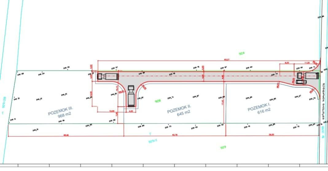 1. pozemok: 616 m2, rozmer: cca.: 39 x 15 m, spolu predávaná výmera je 831 m2