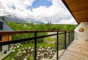 Z obývacej miestnosti aj spálne vstúpite na balkón, kde vás každý deň očarí výnimočný výhľad na tatranské štíty. Atmosféru dotvára šum horského potoka, ktorý preteká priamo pod balkónom.
