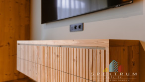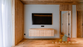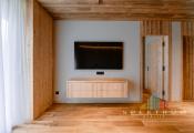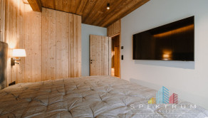 Spálňu s vysokokvalitnou posteľou značky Saffron, na mieru vyrobeným nábytkom z dubového dreva a ďalším Smart TV SAMSUNG