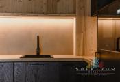 Kuchyňu so vstavanými spotrebičmi Miele – indukčná dvojplatnička, mikrovlnka, umývačka riadu, chladnička a digestor