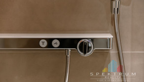 Elegantnú kúpeľňu s vybavením značiek Hansgrohe, Villeroy&Boch, podlahovým vykurovaním a dizajnovým radiátorom