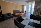 Dispozícia apartmánu: vstupná chodba, kúpeľňa so sprchovacím kútom, umývadlo so zrkadlom a osvetlením, bojler na ohrev vody, WC. Obývacia izba je spojená s kuchyňou + výstup na balkón.