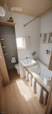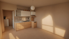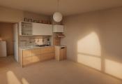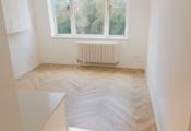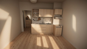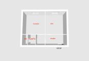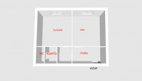Byt má vstupnú chodbu ,jednu veľkú izbu, chodbu, kuchyňu , kúpeľňu s WC