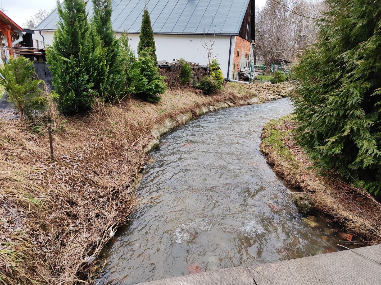 - Chata má sedlovú strechu s novou plechovou krytinou. Odkvapové rúry.