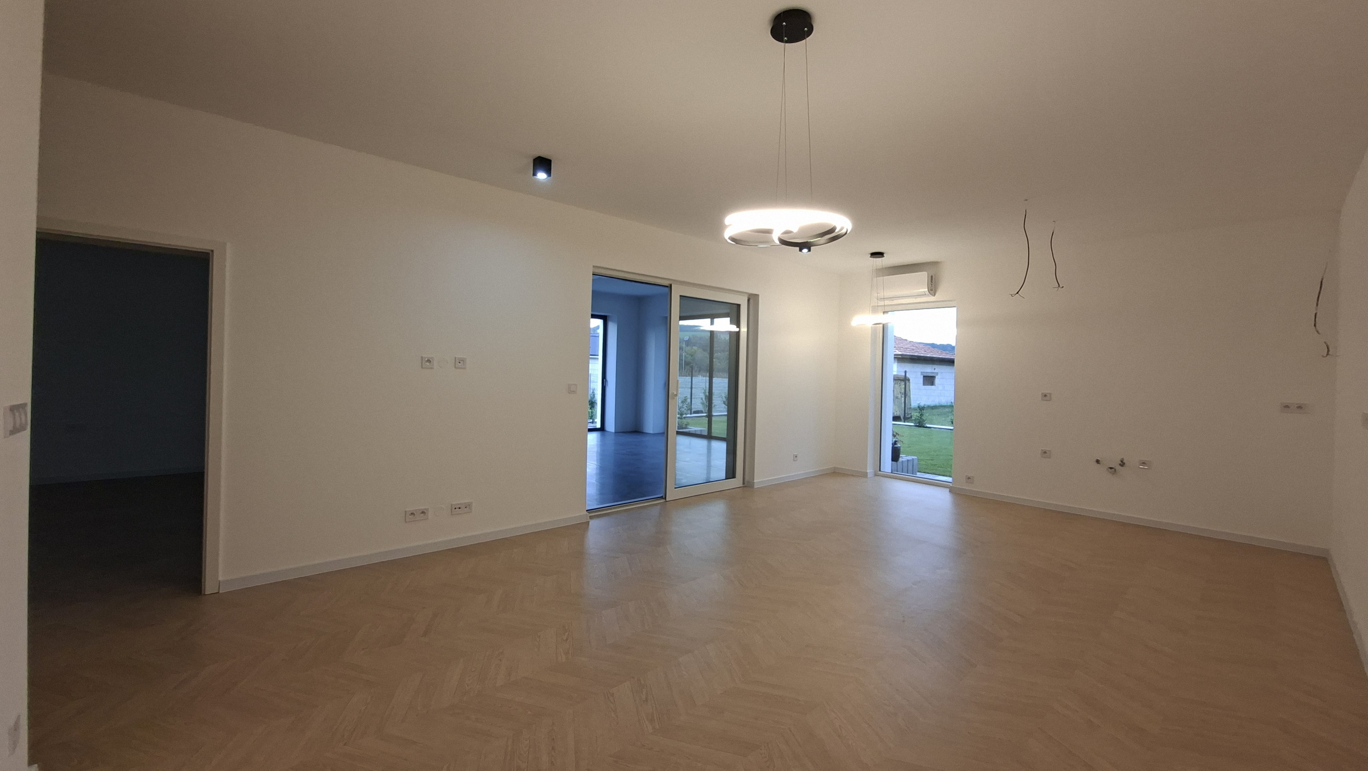 Dispozične pozostáva z vchodu, chodby, samostatné WC, kúpeľňa s WC , 3x izba, technická miestnosť, komora, obývacia časť s kuchyňou s východom na prestrešenú terasu .