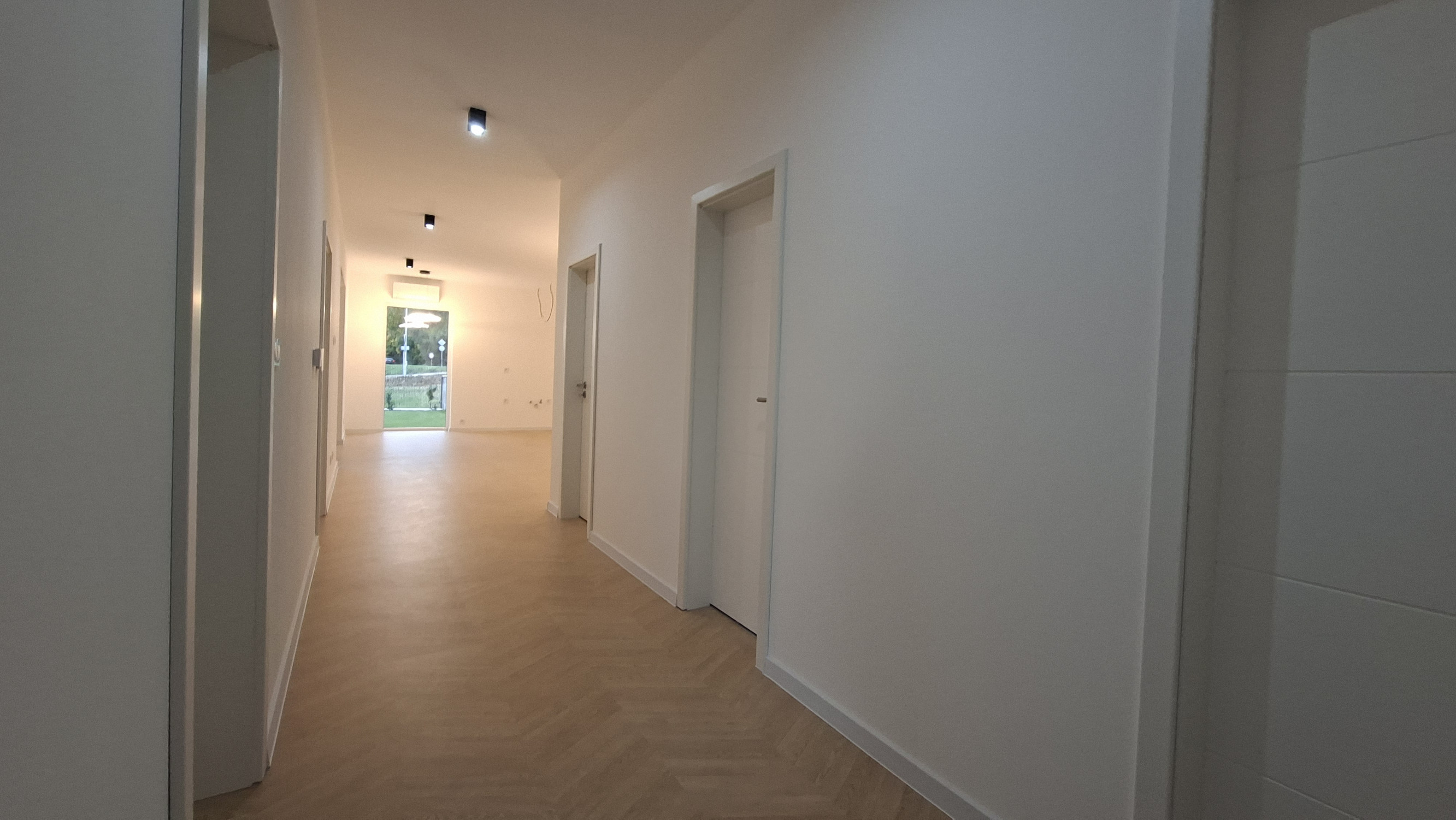 Okná: 6 komorové plastové 3 sklá značky Internorm, príprava na vonkajšie elektronické žalúzie. Posuvné dvere na terasu značky Aluplast.