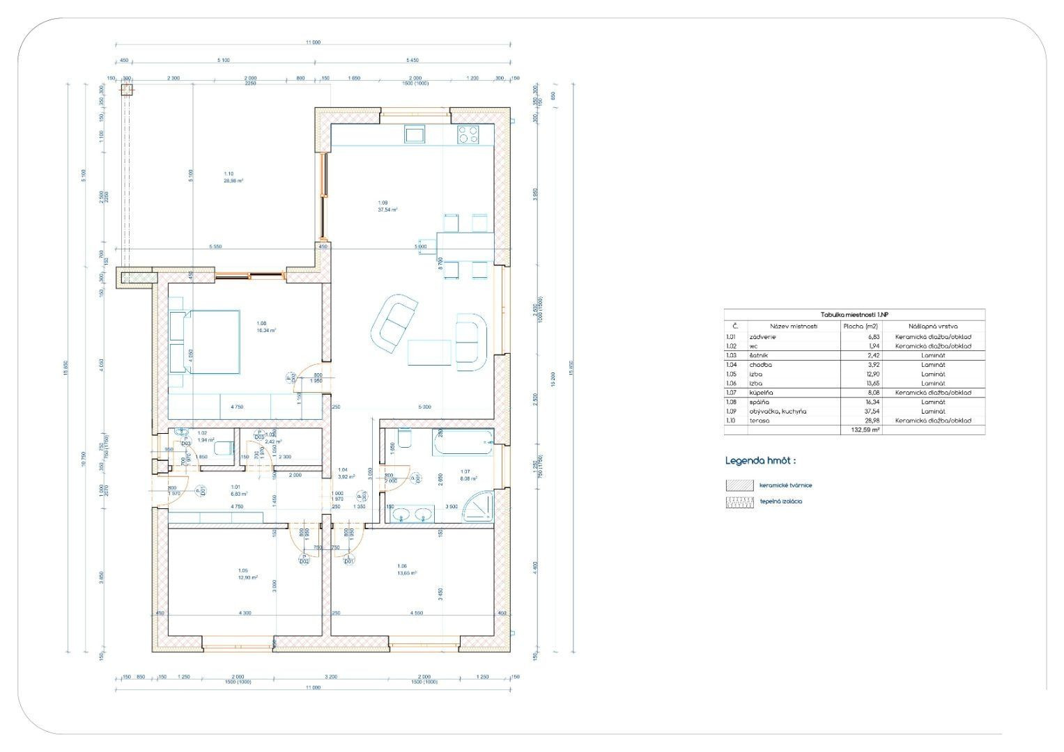 Podlahová plocha domu je 134,5m2 + plocha terasy 28m2.