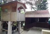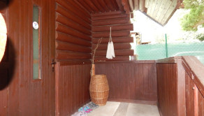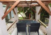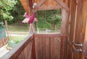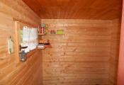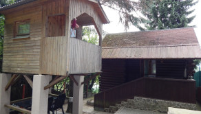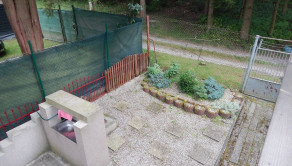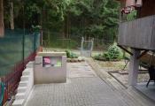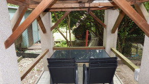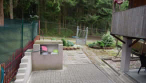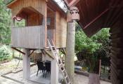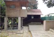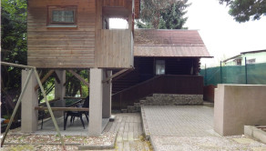 Záhrada sa nachádza v krásnom prostredí s výhľadom na les, na pozemku sa nachádza druhý domček na pilotách.
