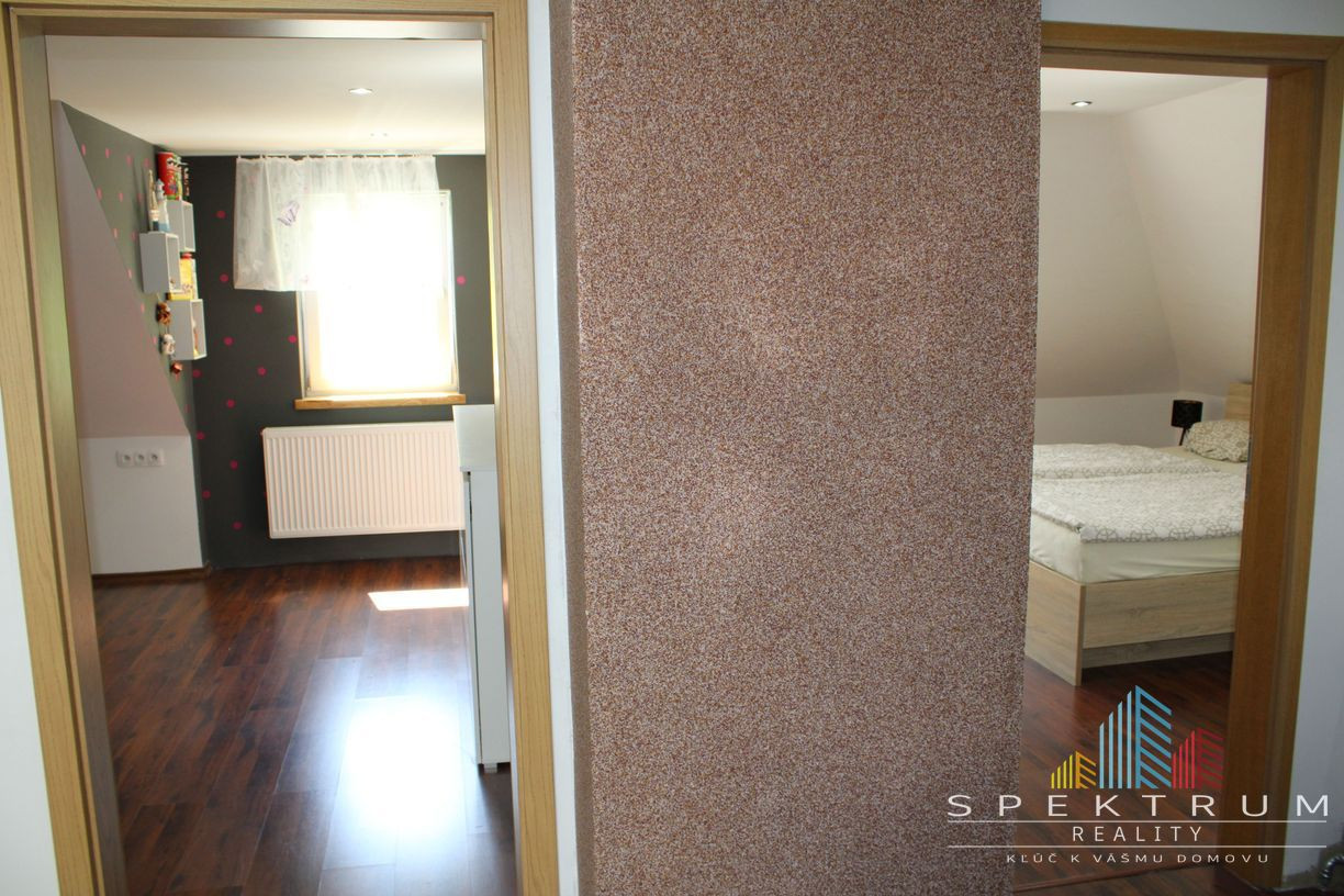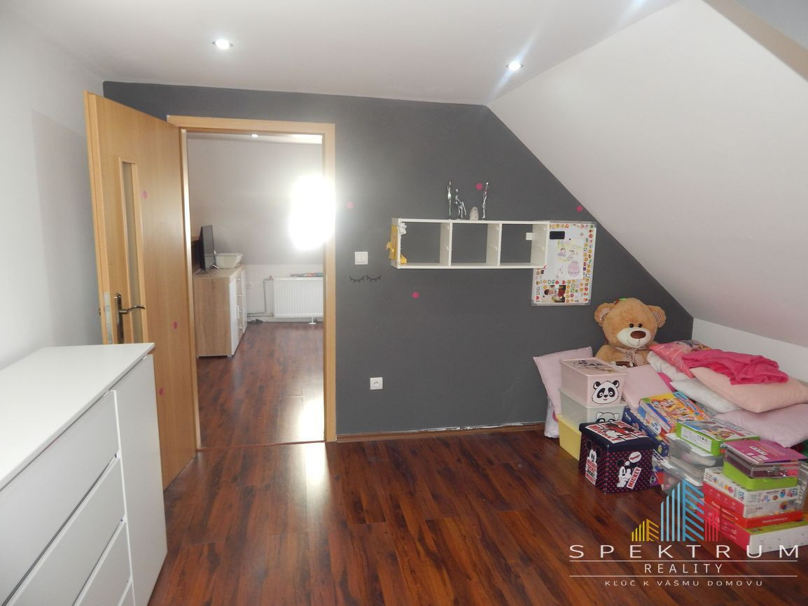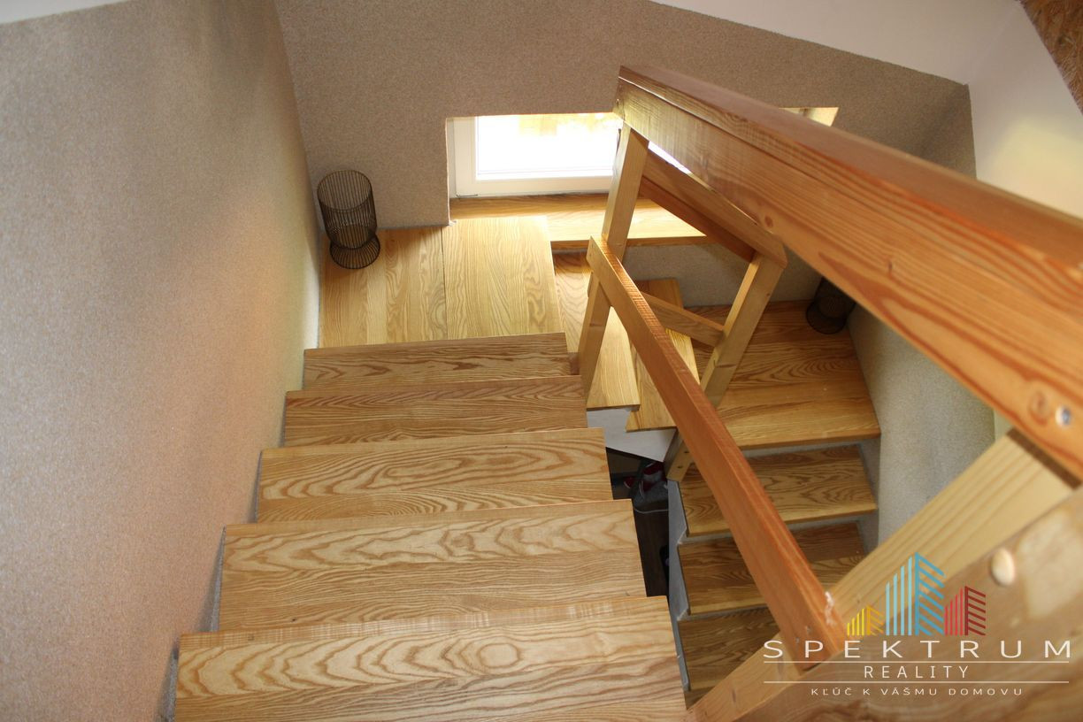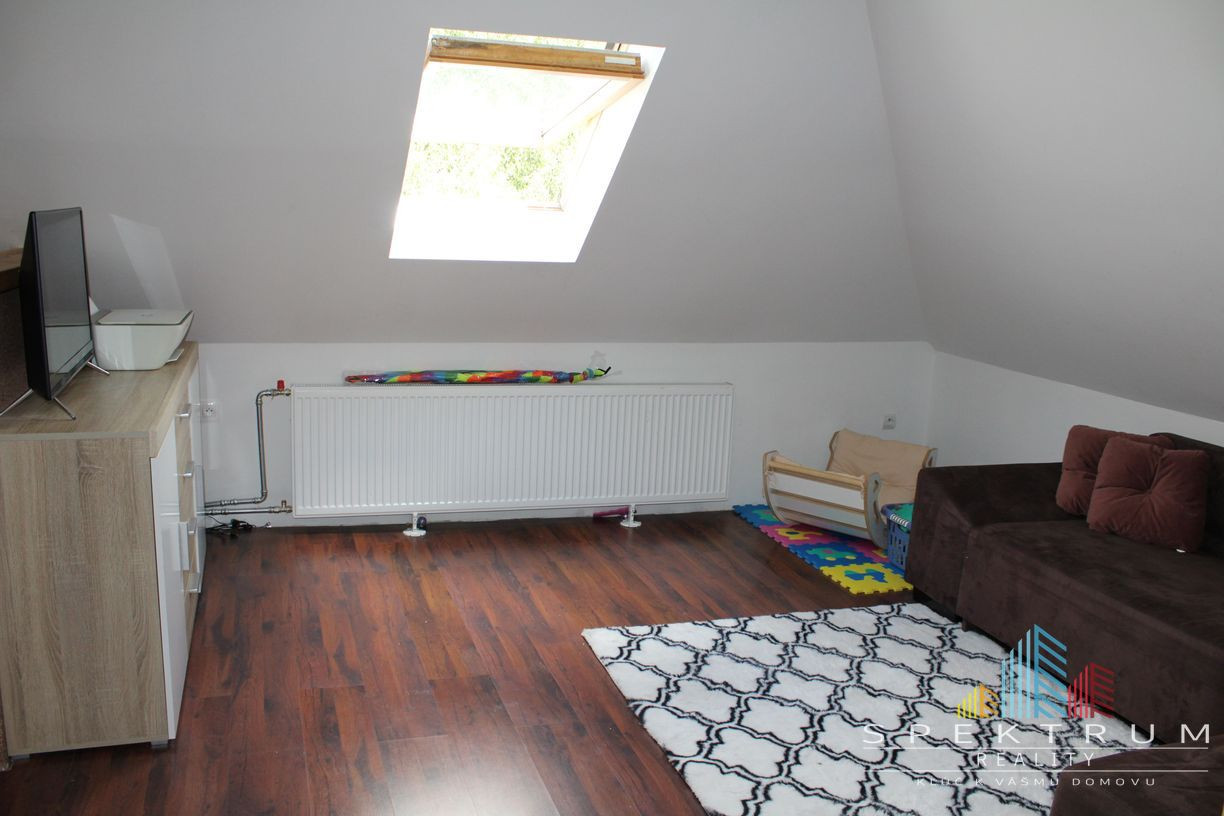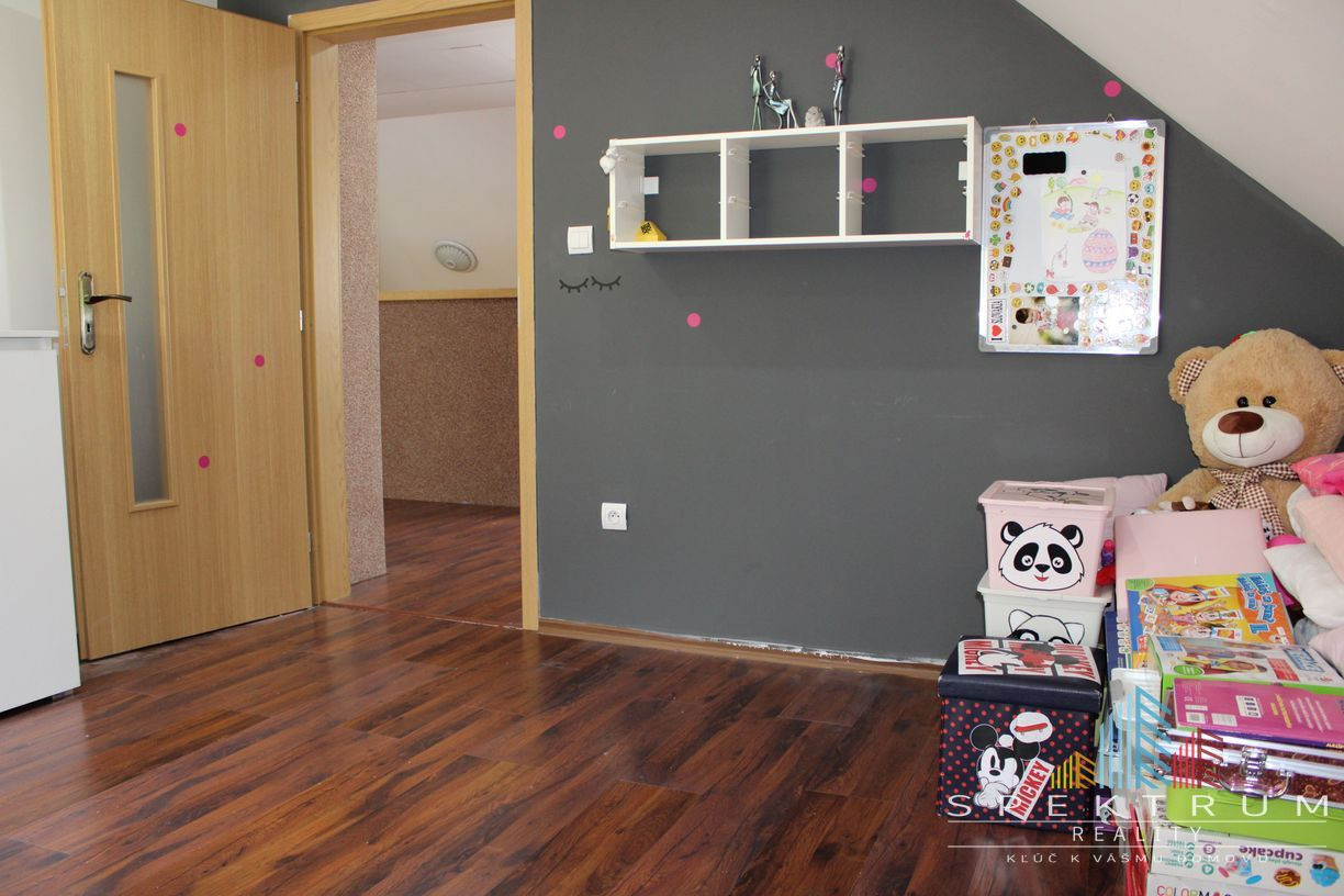 **Popis dispozície domu:** Dom sa rozprestiera na troch úrovniach s praktickým rozdelením priestorov. **Suterén** je kompletne podpivničený a pozostáva z dvoch funkčných miestností - skladu na drevo a kotolne. V kotolni sa nachádza kotol na pevné palivo a bojler s objemom 120 litrov na ohrev teplej vody. **Prvé poschodie** vstupujete cez verandu priamo do obytnej časti. Nachádza sa tu kúpeľňa vybavená rohovou vaňou, kúpeľňovým nábytkom, umývadlom a WC, ktorá má okno zabezpečujúce prirodzené vetranie. Centrálna chodba efektívne rozdeľuje všetky miestnosti - na ľavej strane poskytuje vstup do suterénnych priestorov, na pravej strane sa nachádza vstup do kuchyne a obývačky. Na konci chodby je umiestnená priestranná detská izba. Drevené schodisko na konci chodby vedie do podkrovia. **Podkrovie** ponúka ďalšie obytné možnosti s kúpeľňovým jadrom hneď vpravo, ktoré je vybavené umývadlom, zrkadlom a spojeným WC. Nachádza sa tu priestranná priechodná obývačka, dve samostatné spálne a praktický povalový priestor na skladovanie.