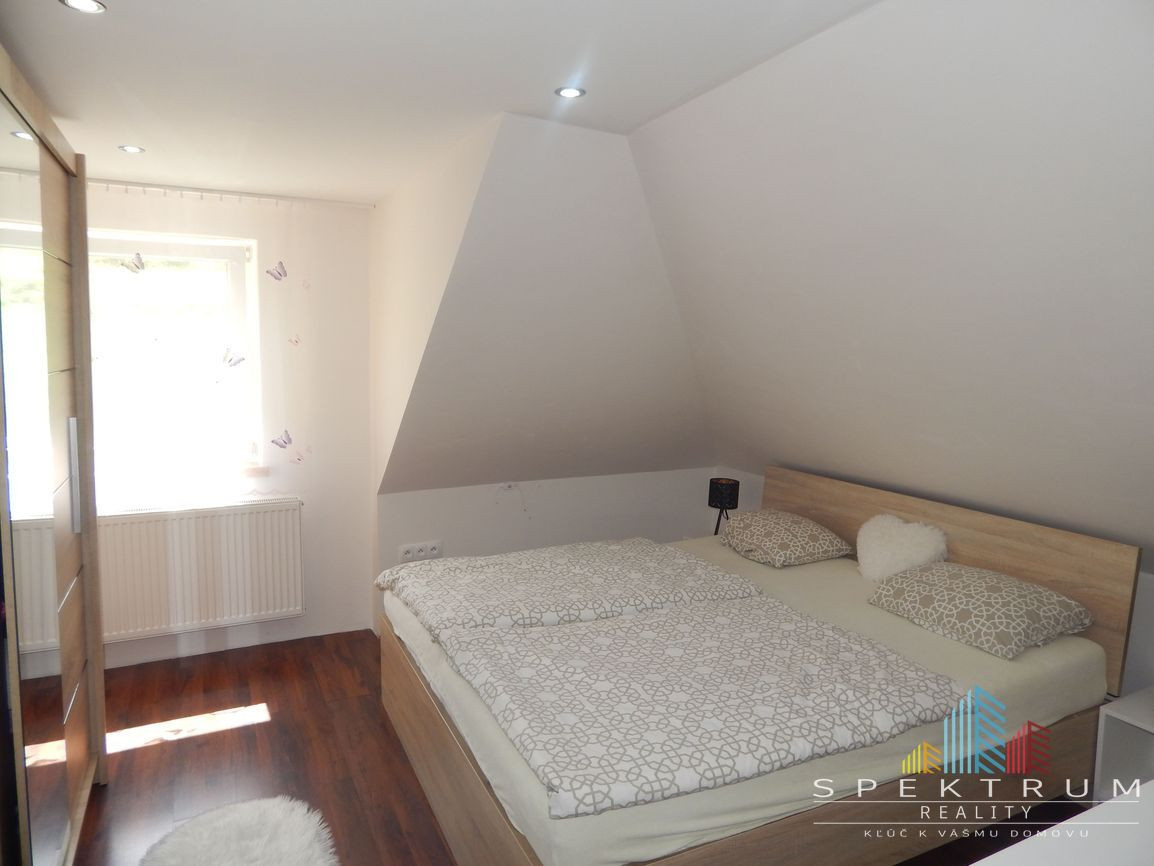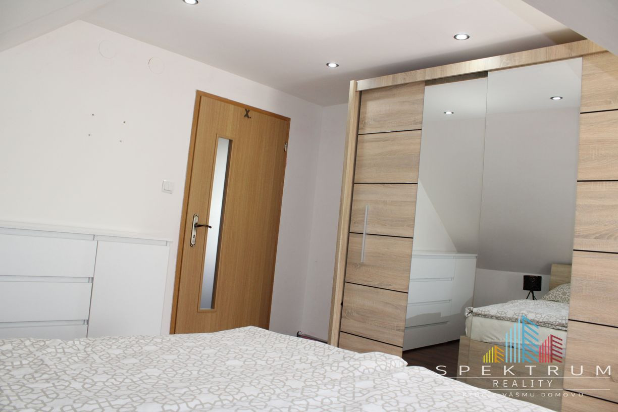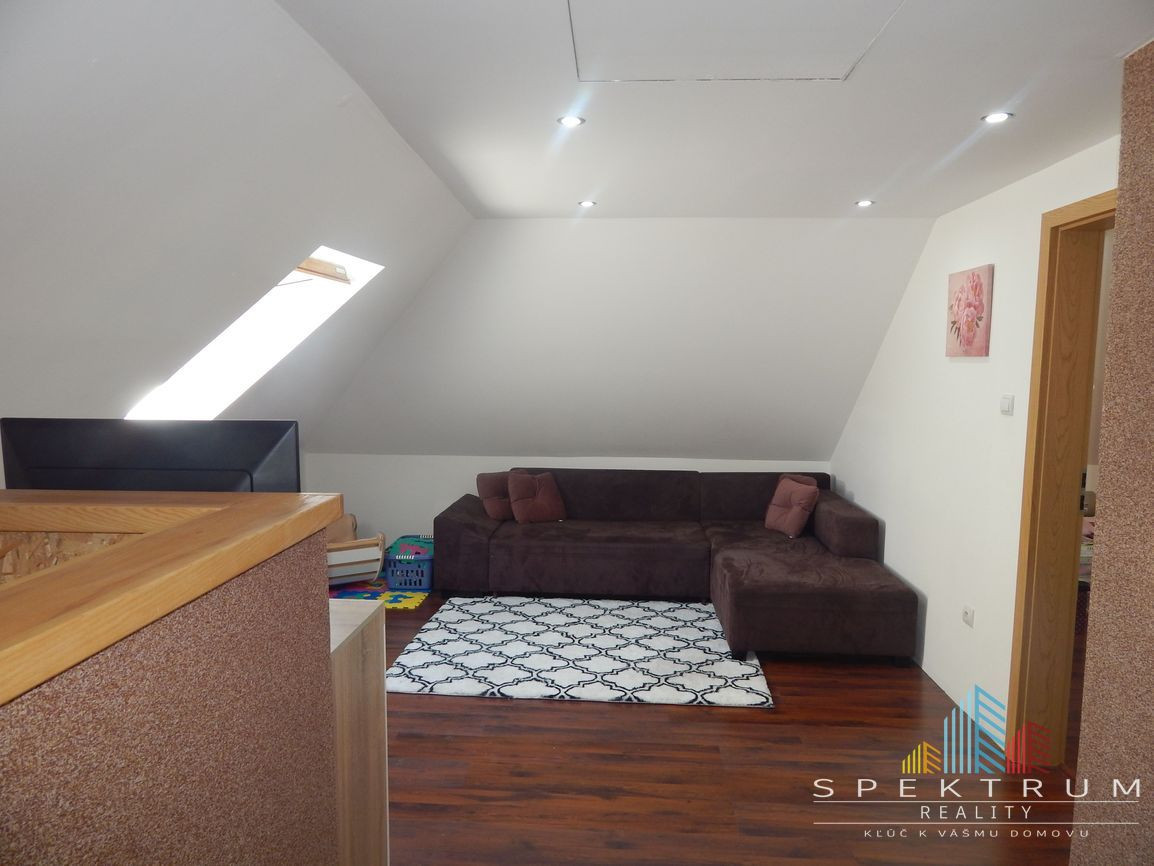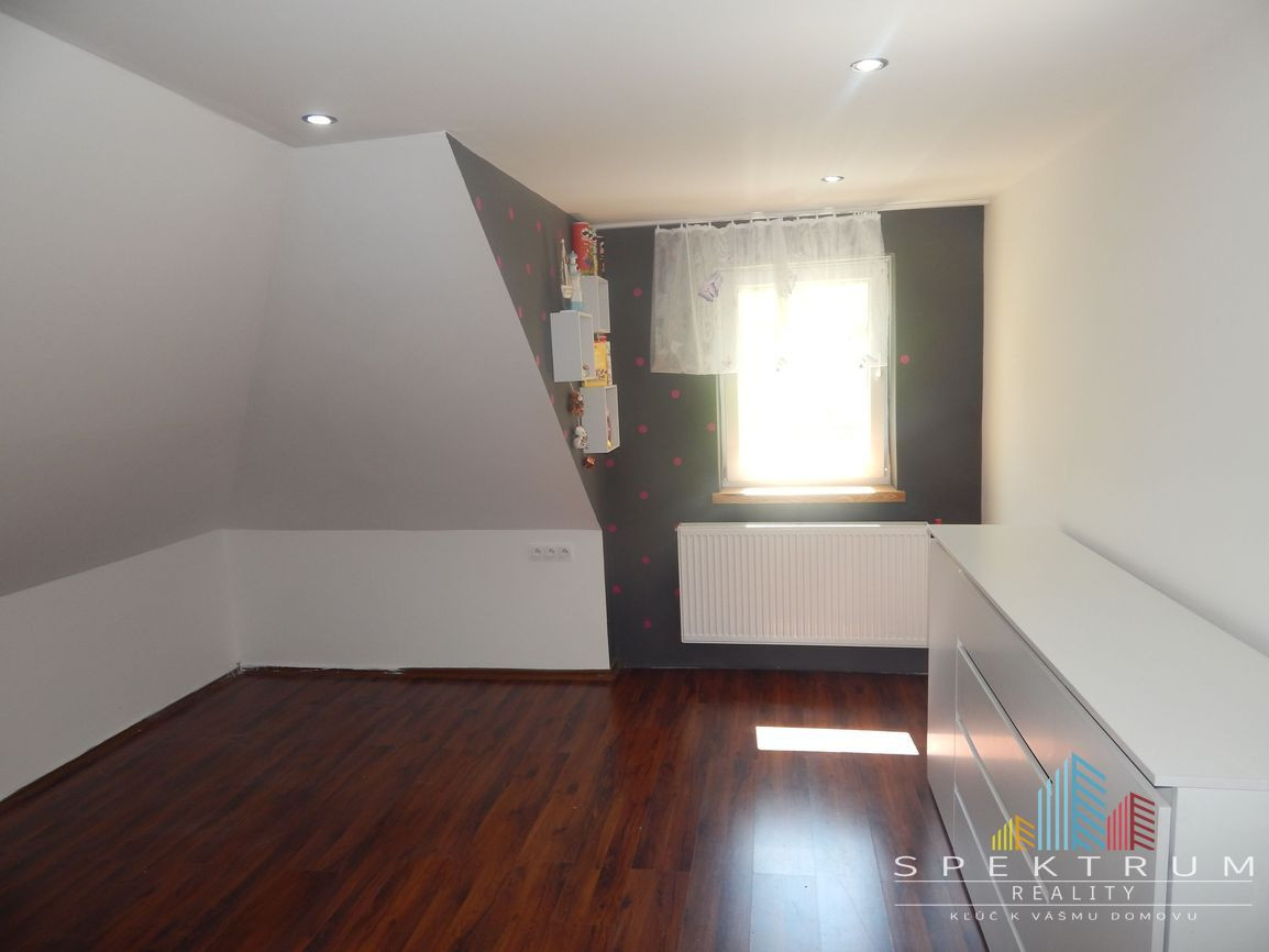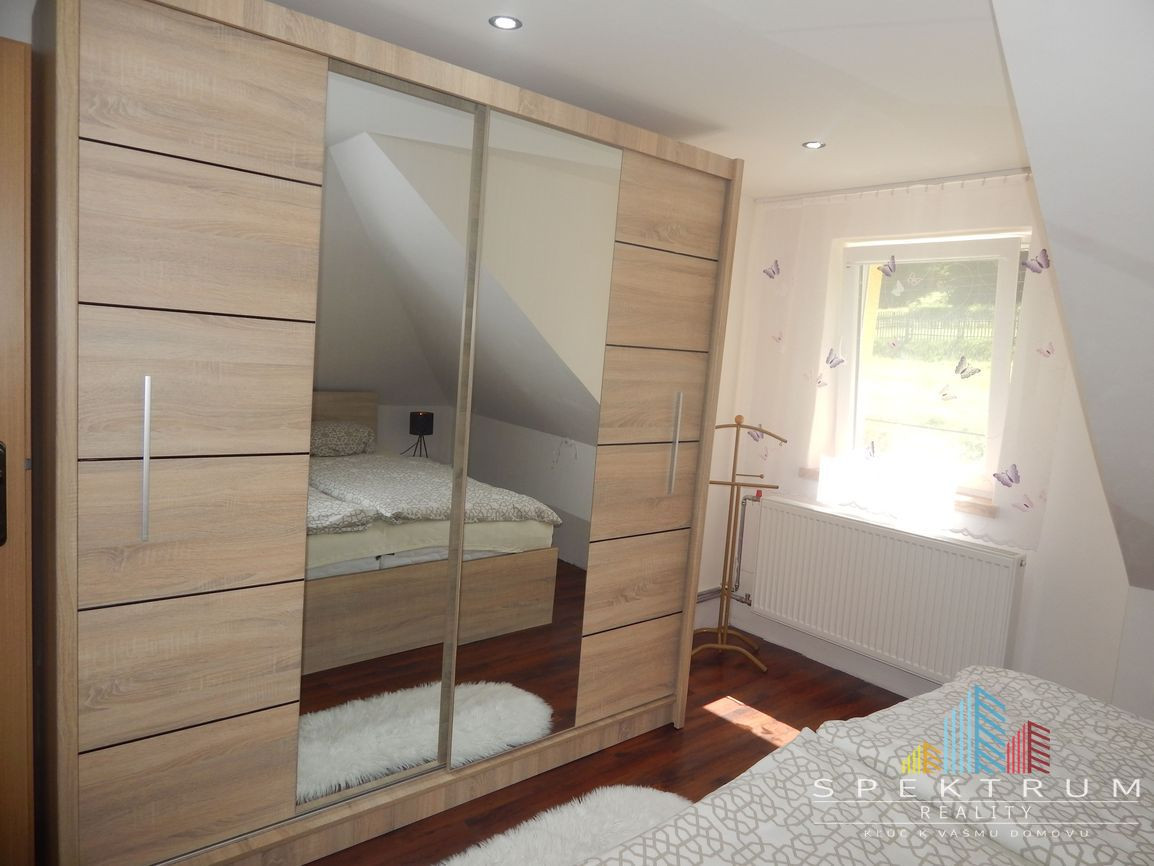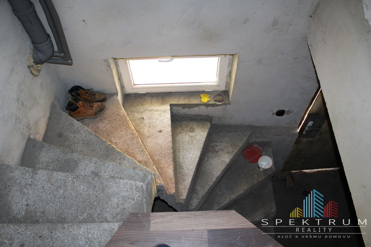 **Popis dispozície domu:** Dom sa rozprestiera na troch úrovniach s praktickým rozdelením priestorov. **Suterén** je kompletne podpivničený a pozostáva z dvoch funkčných miestností - skladu na drevo a kotolne. V kotolni sa nachádza kotol na pevné palivo a bojler s objemom 120 litrov na ohrev teplej vody. **Prvé poschodie** vstupujete cez verandu priamo do obytnej časti. Nachádza sa tu kúpeľňa vybavená rohovou vaňou, kúpeľňovým nábytkom, umývadlom a WC, ktorá má okno zabezpečujúce prirodzené vetranie. Centrálna chodba efektívne rozdeľuje všetky miestnosti - na ľavej strane poskytuje vstup do suterénnych priestorov, na pravej strane sa nachádza vstup do kuchyne a obývačky. Na konci chodby je umiestnená priestranná detská izba. Drevené schodisko na konci chodby vedie do podkrovia. **Podkrovie** ponúka ďalšie obytné možnosti s kúpeľňovým jadrom hneď vpravo, ktoré je vybavené umývadlom, zrkadlom a spojeným WC. Nachádza sa tu priestranná priechodná obývačka, dve samostatné spálne a praktický povalový priestor na skladovanie.