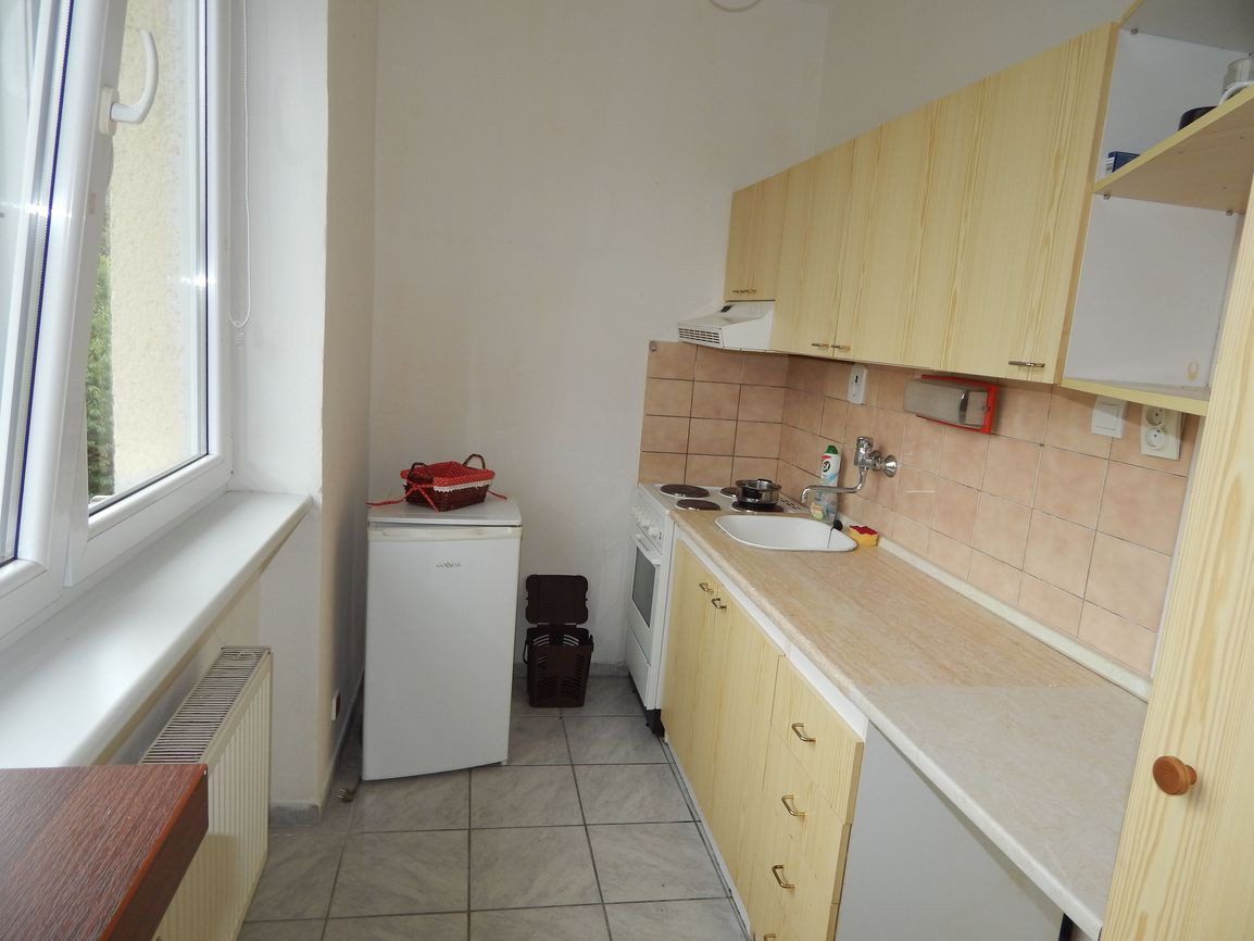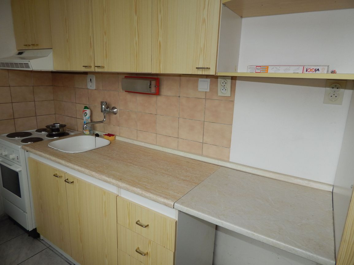 Výbavou bytu je kuchynská linka na mieru so sporákom ( elektrický sporák, digestor, chladnička )