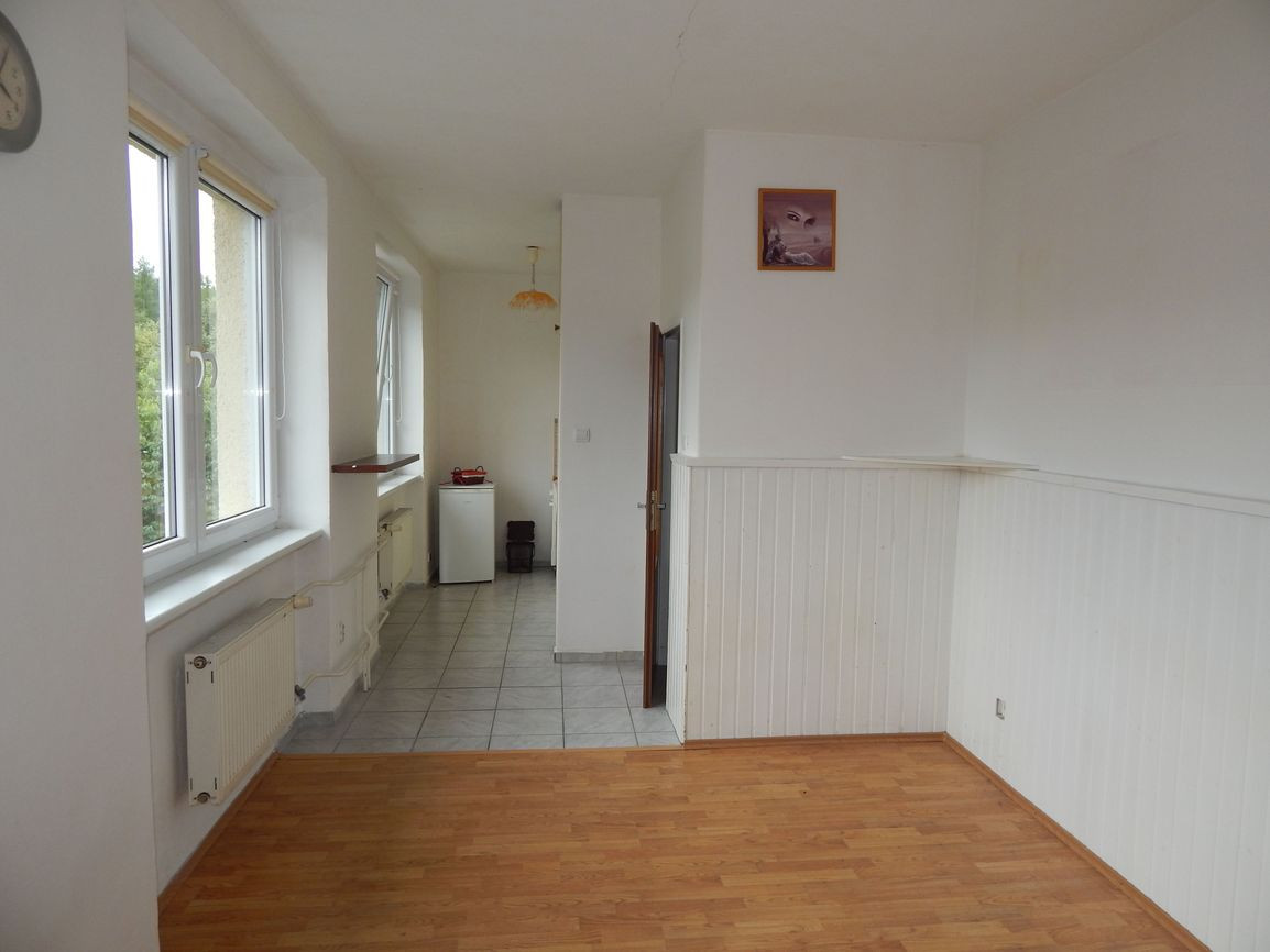 - V obytnej izbe a v kuchyni je laminatová podlaha kombinovaná s dlažbou. Keramická dlažba: chodba a v kúpeľni +WC.