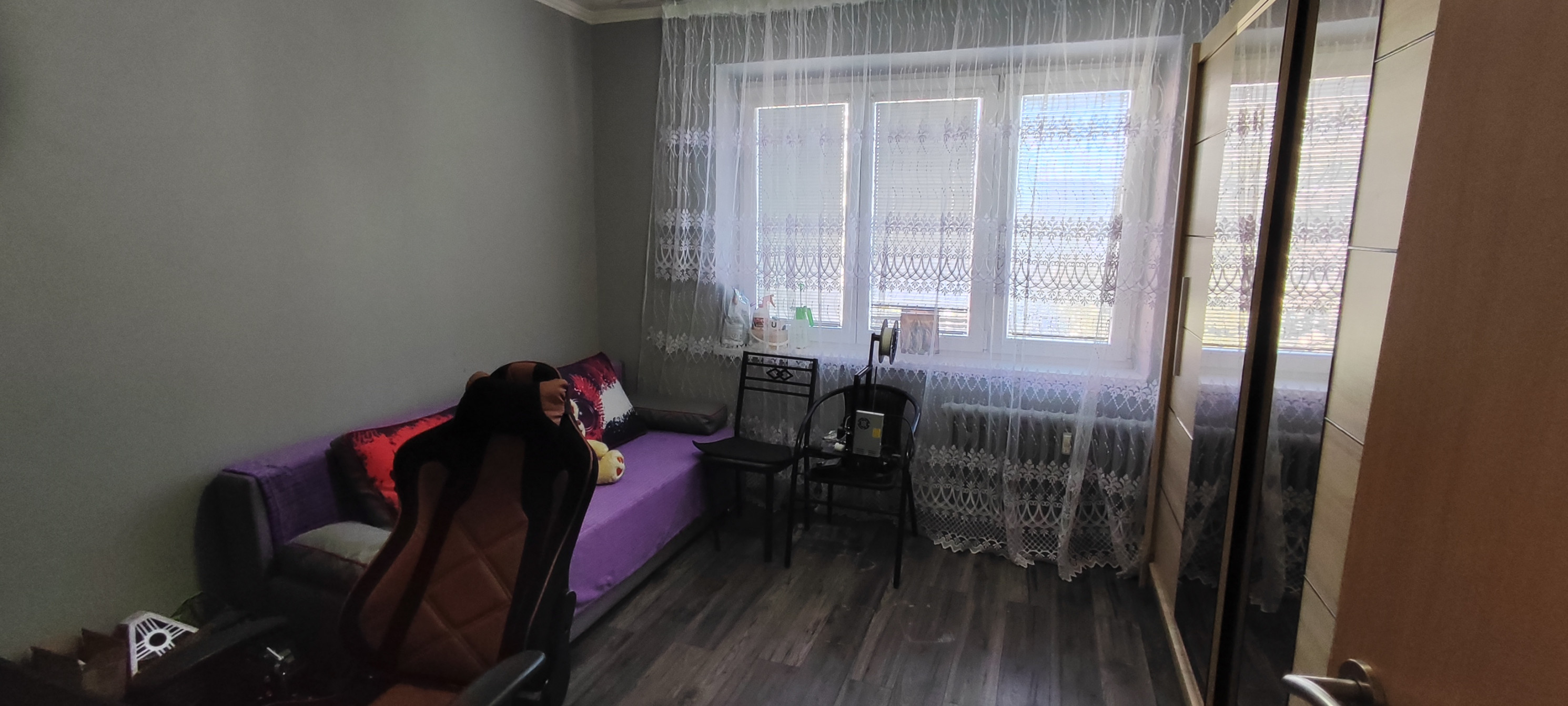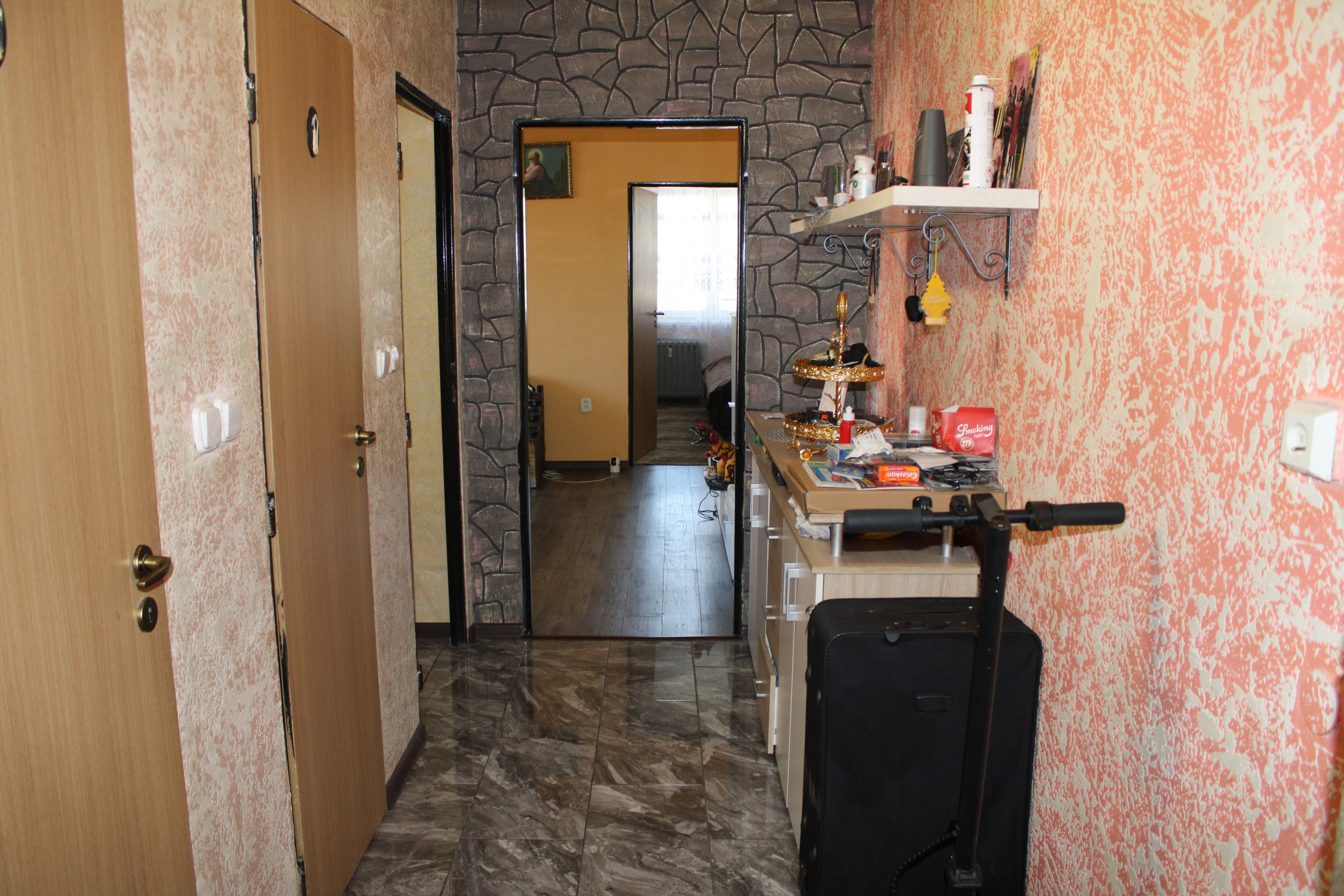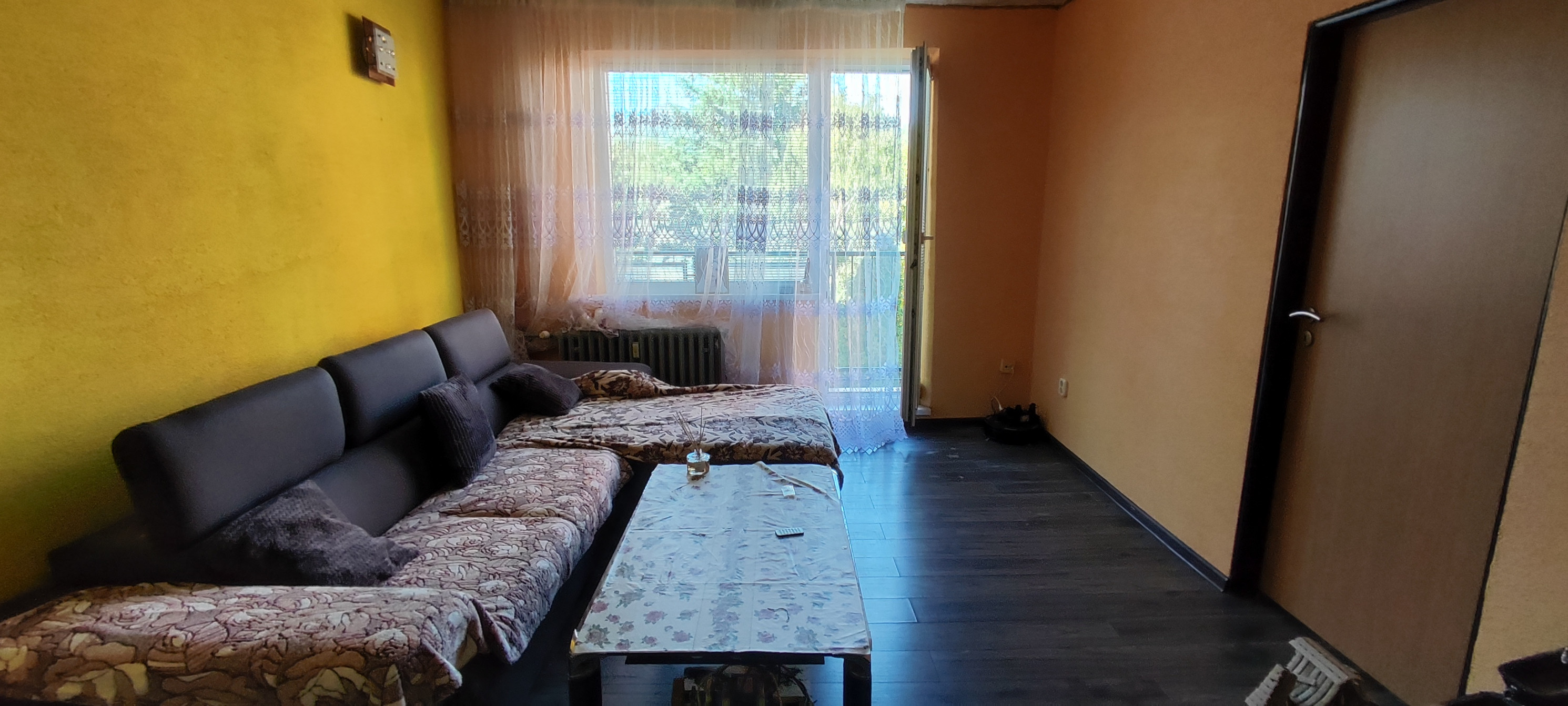 Byt sa nachádza na 4. podlaží a vyznačuje sa praktickým rozložením priestorov. Po vstupe do bytu sa ocitnete vo vstupnej predsieni, z ktorej pokračujete do chodby, ktorá účelne rozdeľuje jednotlivé miestnosti. Naľavo od chodby sa nachádza samostatné WC a kúpeľňové jadro, ďalej je umiestnená kuchyňa. Na konci chodby sa rozprestiera priestranná priechodná obývacia izba s priamym výstupom na balkón. Z obývacej izby máte prístup do dvoch samostatných obytných izieb. K bytu taktiež prináleží praktická kolajková pivnica umiestnená v suteréne bytového domu. Nehnuteľnosť má čiastočne vhodnú orientáciu smerom na východ, čo zabezpečuje príjemné ranné osvetlenie.