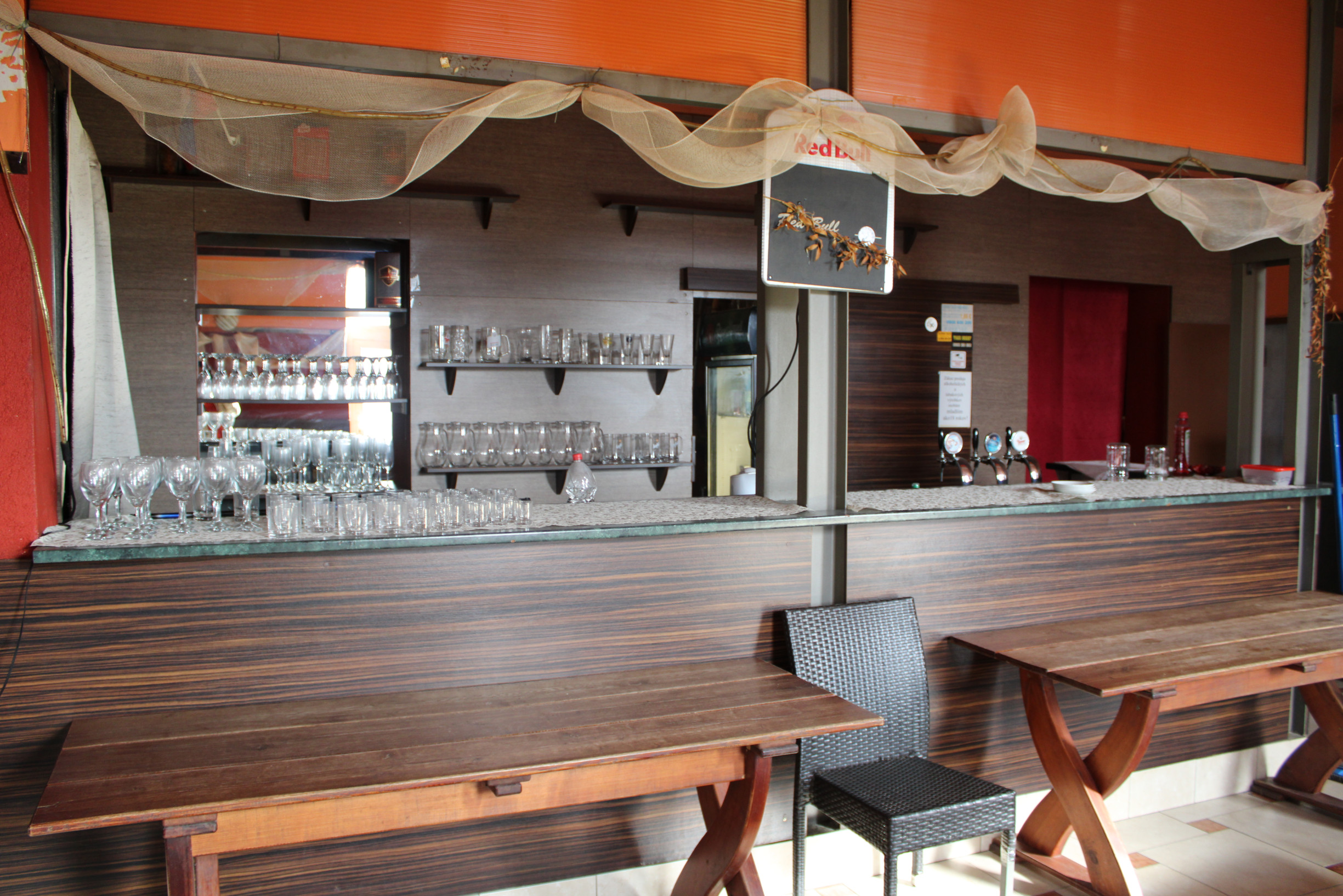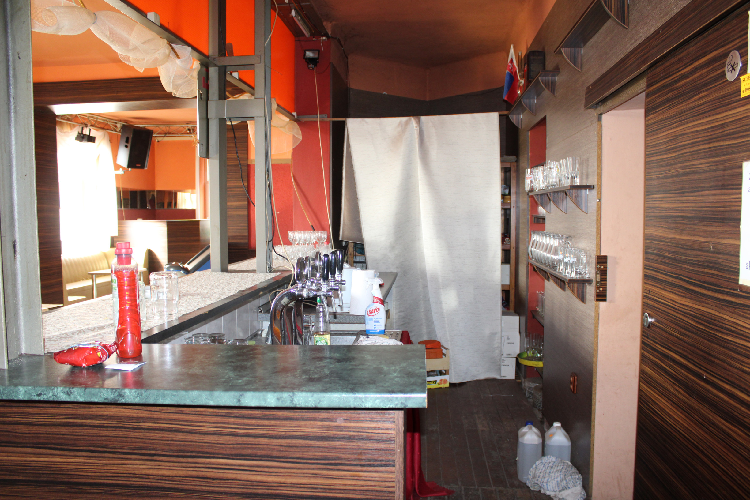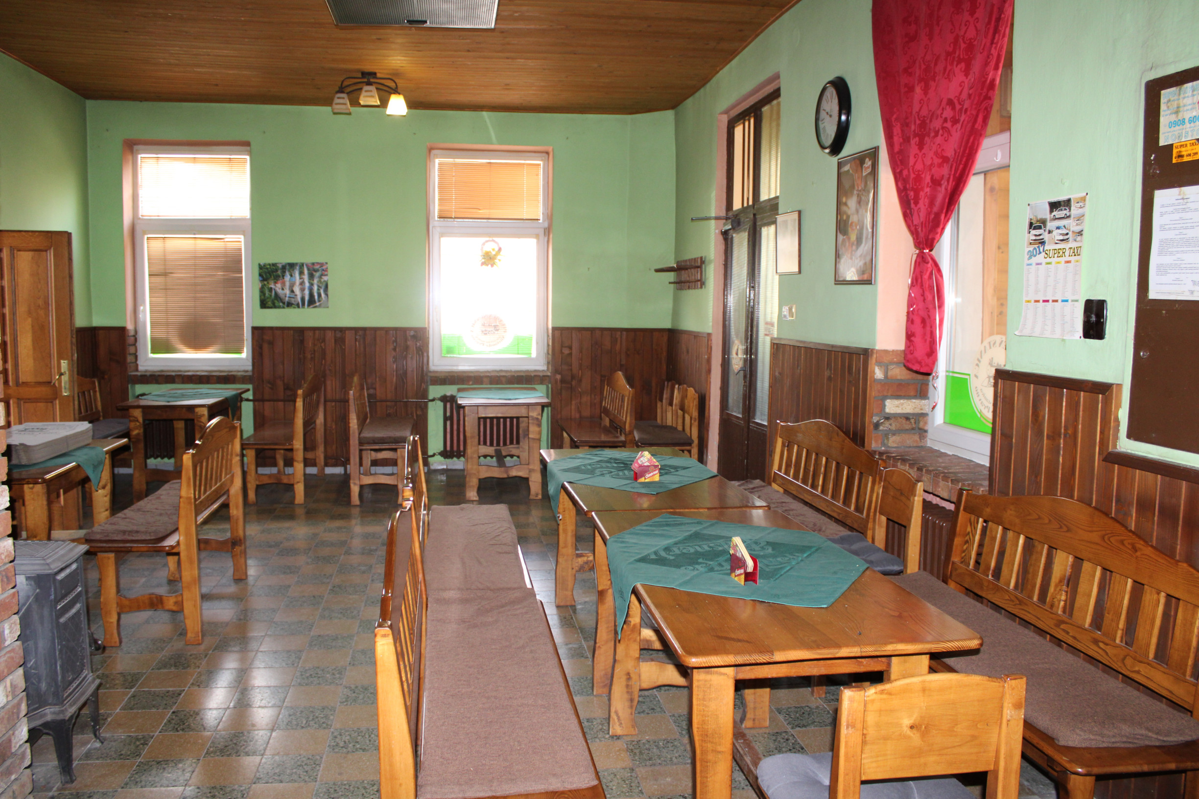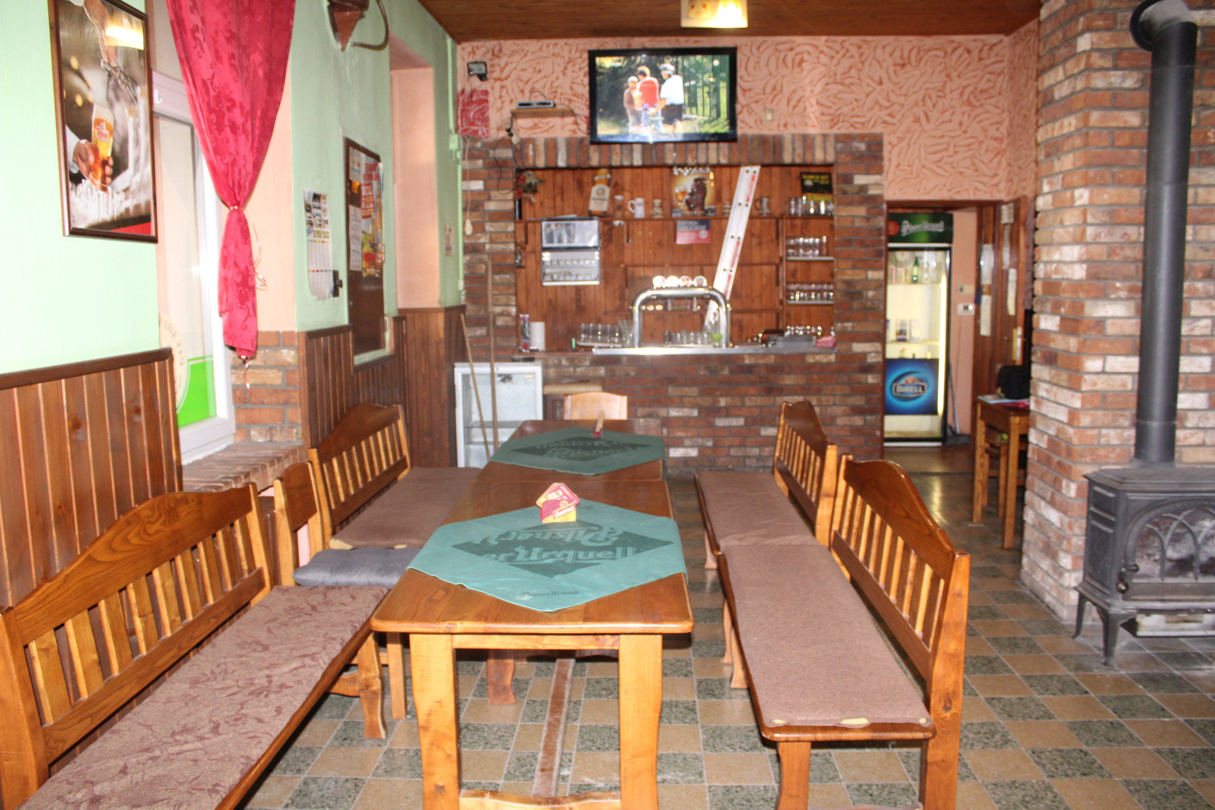 Dom má tri samostatné vstupy - hlavný vstup od ulice, vstup cez terasu a zadný personálny vstup. Po vstupe do domu sa dostanete do priestrannej krčmovej miestnosti s barom a posedením, ktorá plynule prechádza do druhej miestnosti - jedálne s nafajčiarskou miestnosťou. Dom ďalej disponuje prakticky riešenou kuchyňou, šatňou a WC pre zamestnancov. Pre pohodlie návštevníkov sú k dispozícii samostatné sociálne zariadenia - WC pre mužov a WC pre ženy.