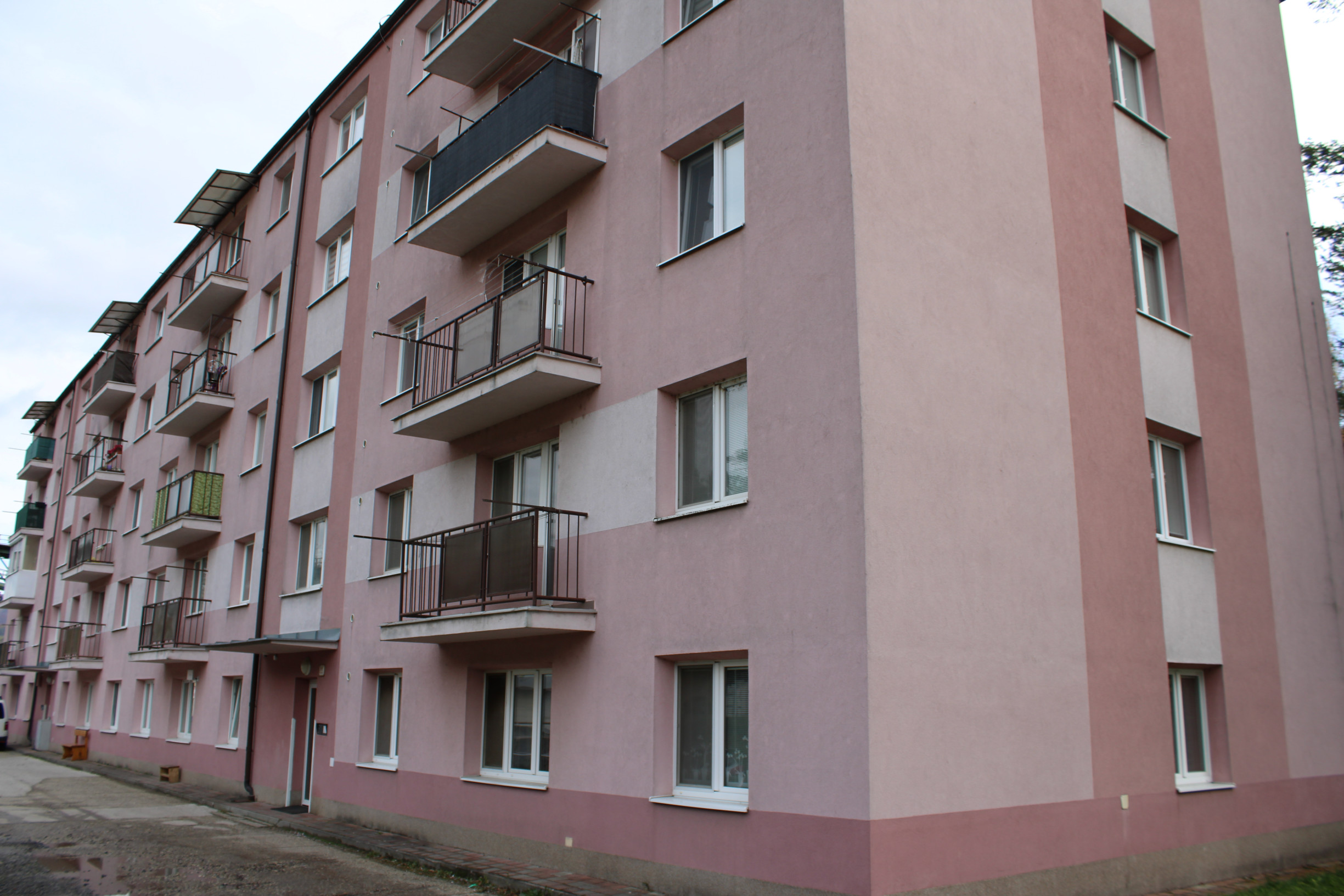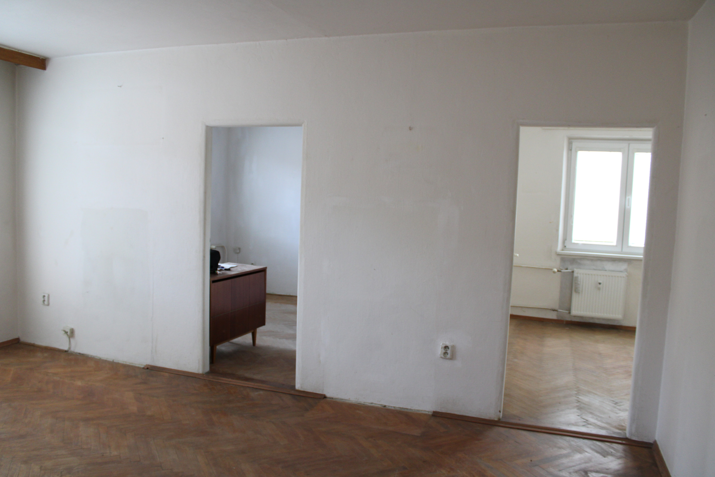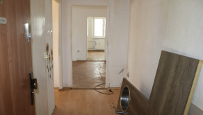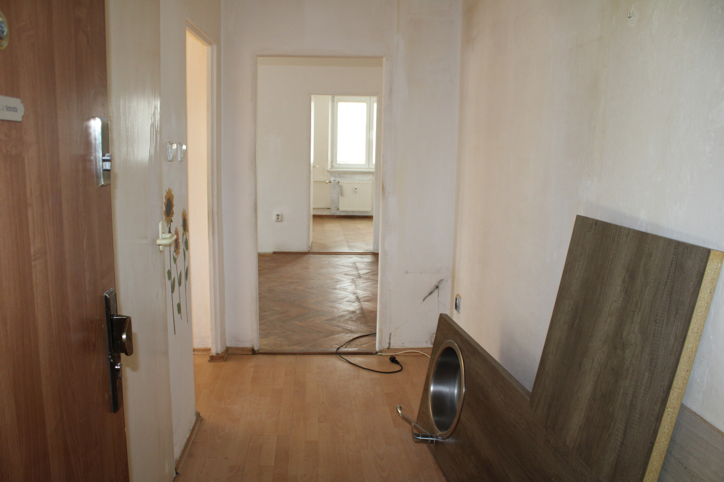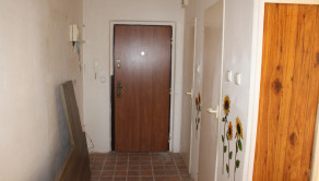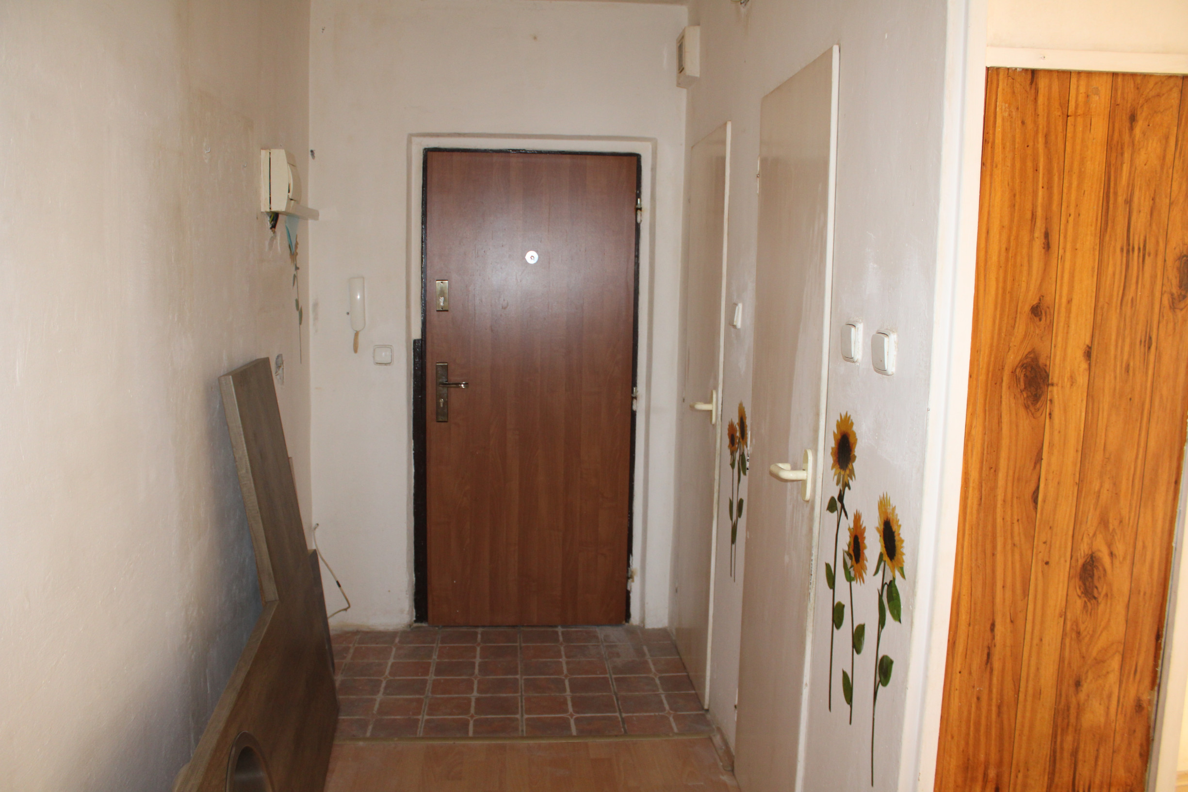 Byt sa nachádza na 4. poslednom poschodí tehlovej bytovky bez výťahu. Dispozícia bytu zahŕňa vstupnú chodbu, z ktorej sa vľavo nachádza samostatné WC a kúpeľňové jadro. Ďalej sa tu nachádza kuchyňa a oproti vchodovým dverám je umiestnená priestranná obývacia izba, ktorá rozdeľuje dve obytné izby - spálne. Z obývacej izby je zabezpečený výstup na balkón.
