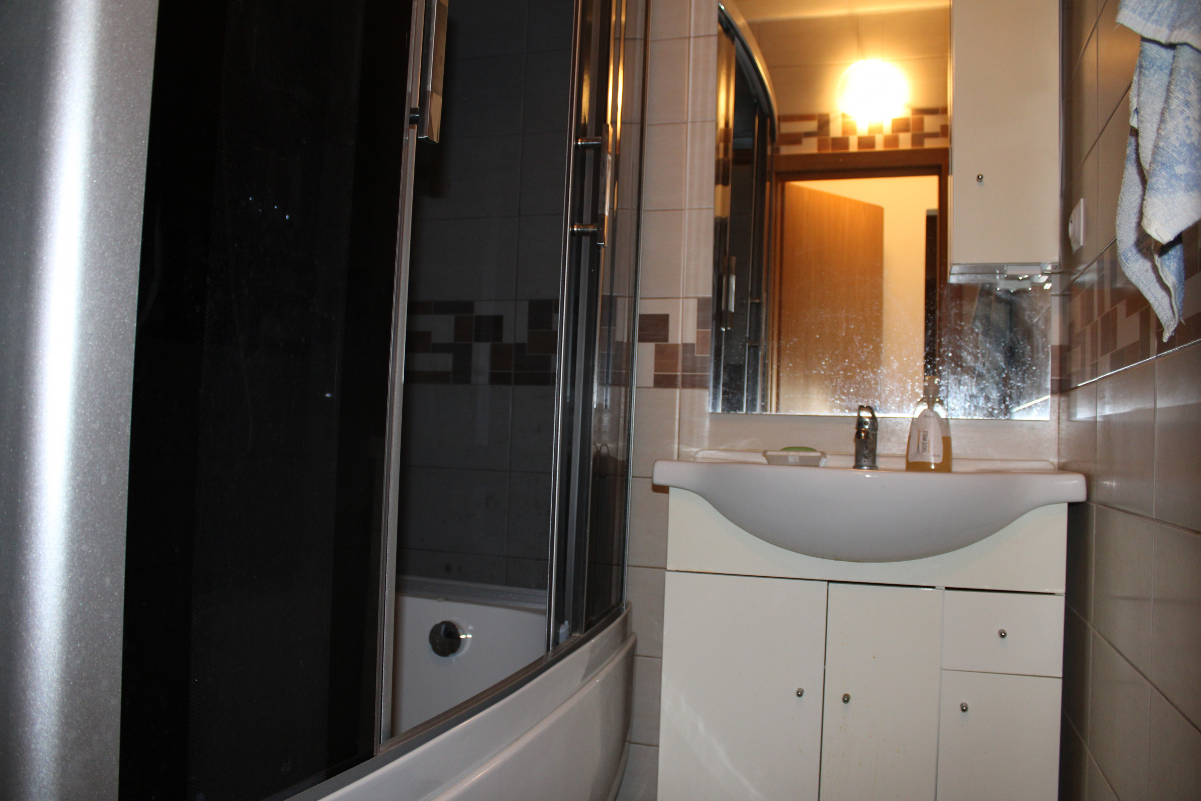 - Rekonštruované murované jadro so sprchovacím priestranným kútom, nerezová páková batéria so sprchou, keramické umývadlo so zrkadlom a osvetlením, práčka zn. ELEKTROLUX , samostatné WC.
