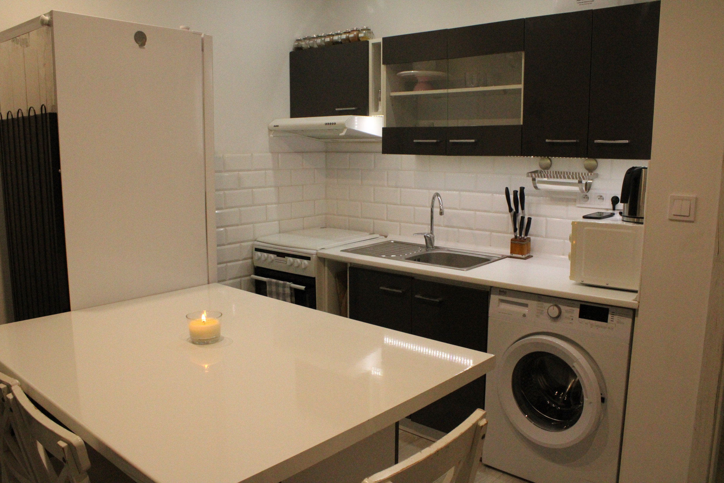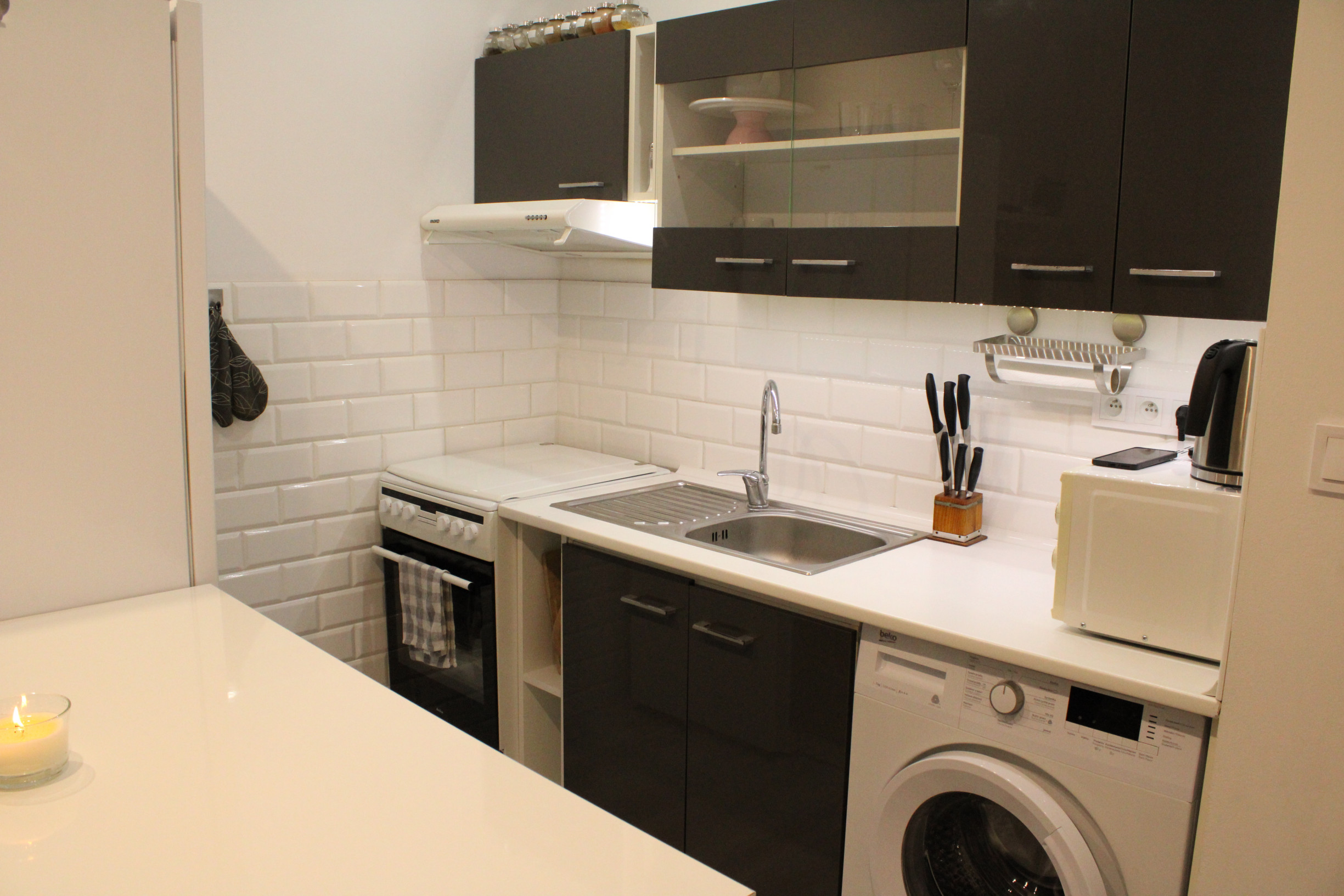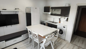 Byt sa prenajíma kompletne zariadený. Kuchyňa je vybavená kuchynskou linkou s plynovým sporákom a elektrickou rúrou, digestorom, mikrovlnnou rúrou a kombinovanou chladničkou s mrazničkou. K dispozícii je taktiež práčka a kuchynský stôl so stoličkami. V miestností sa nachádza gauč a televízor. Obytná izba je zariadená manželskou posteľou, skriňou a komodou.