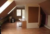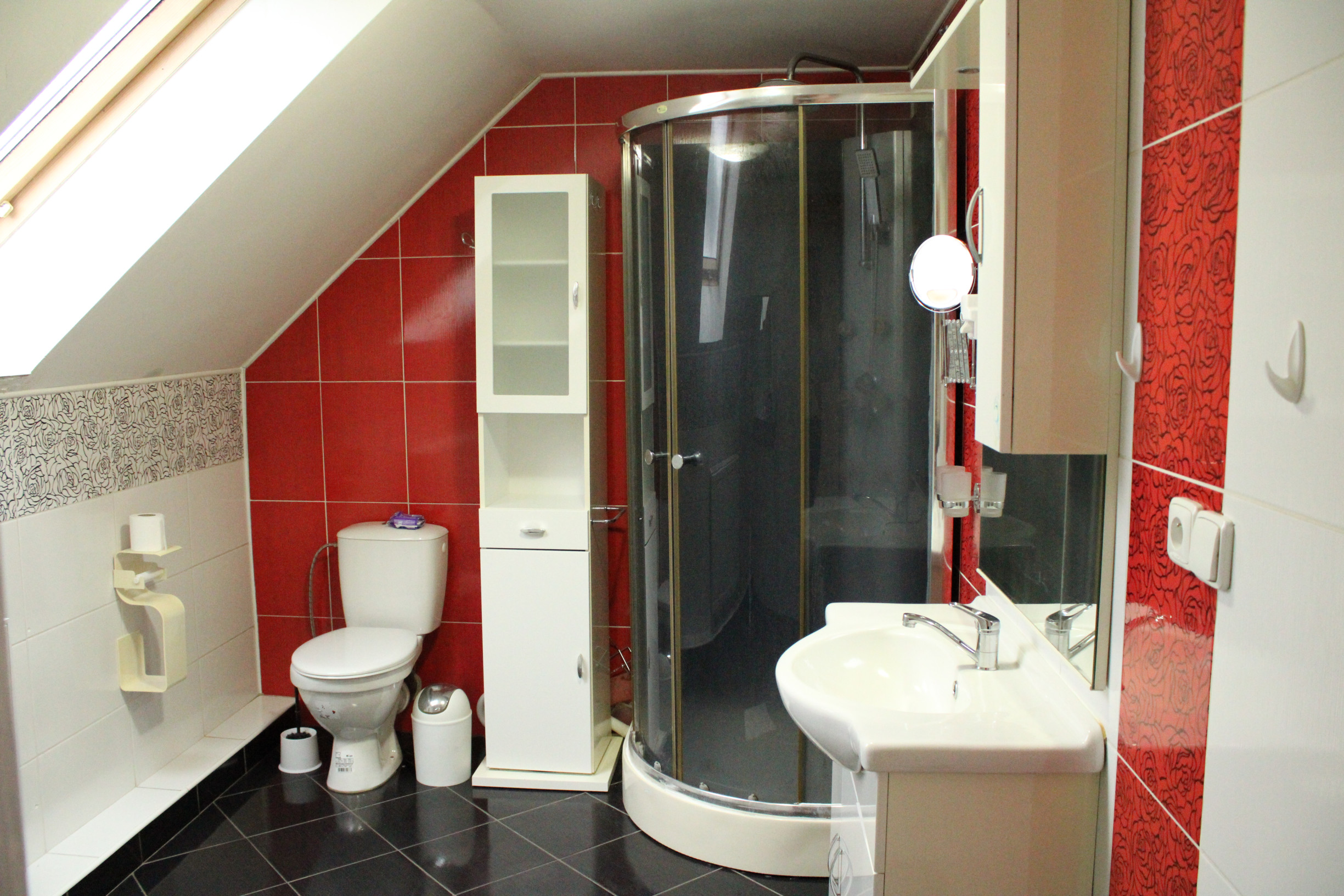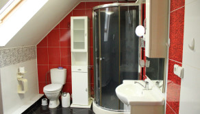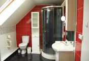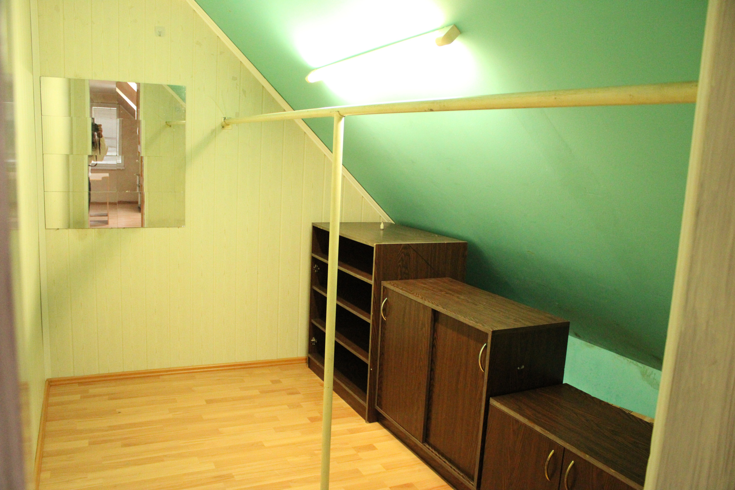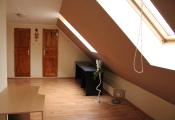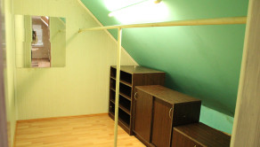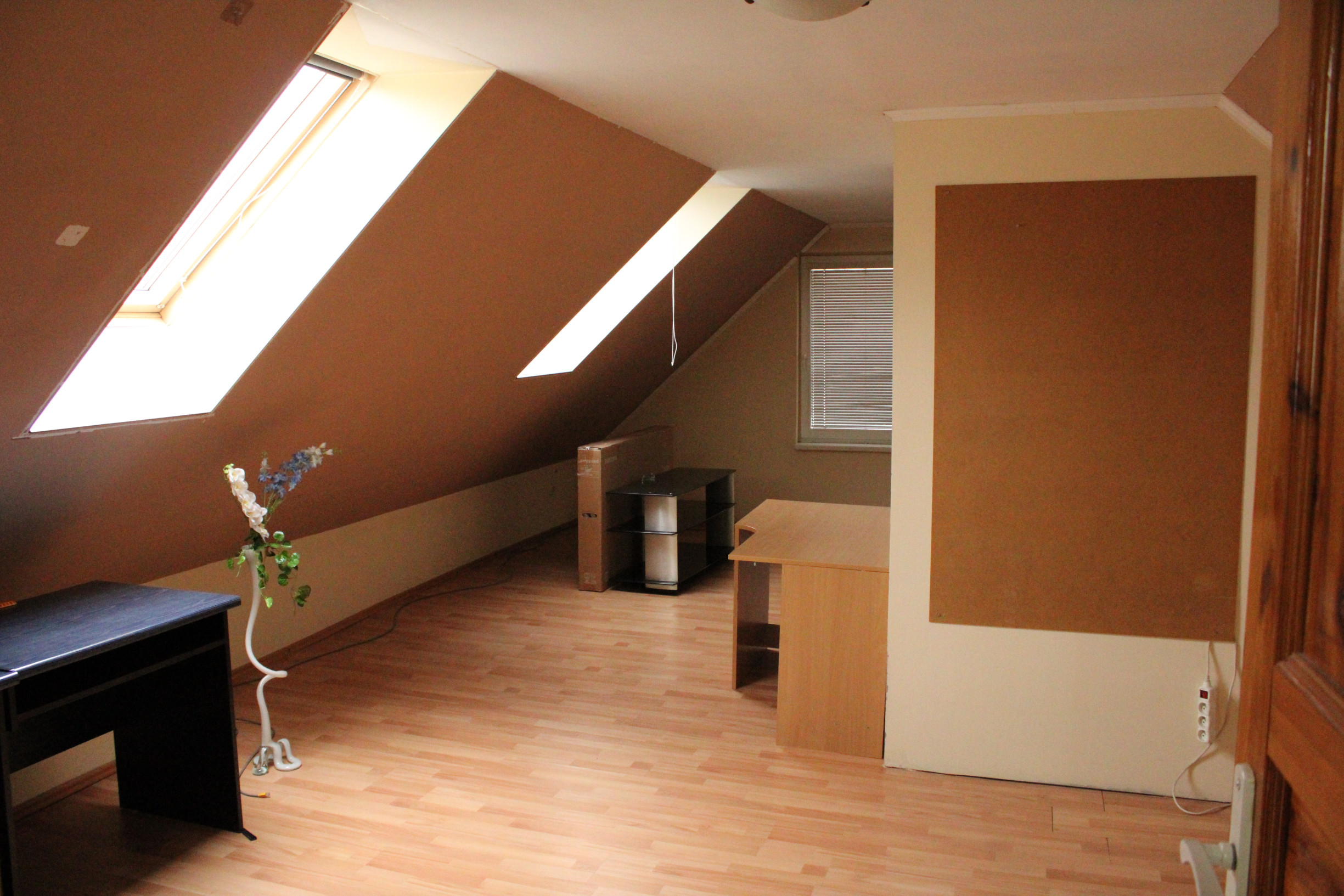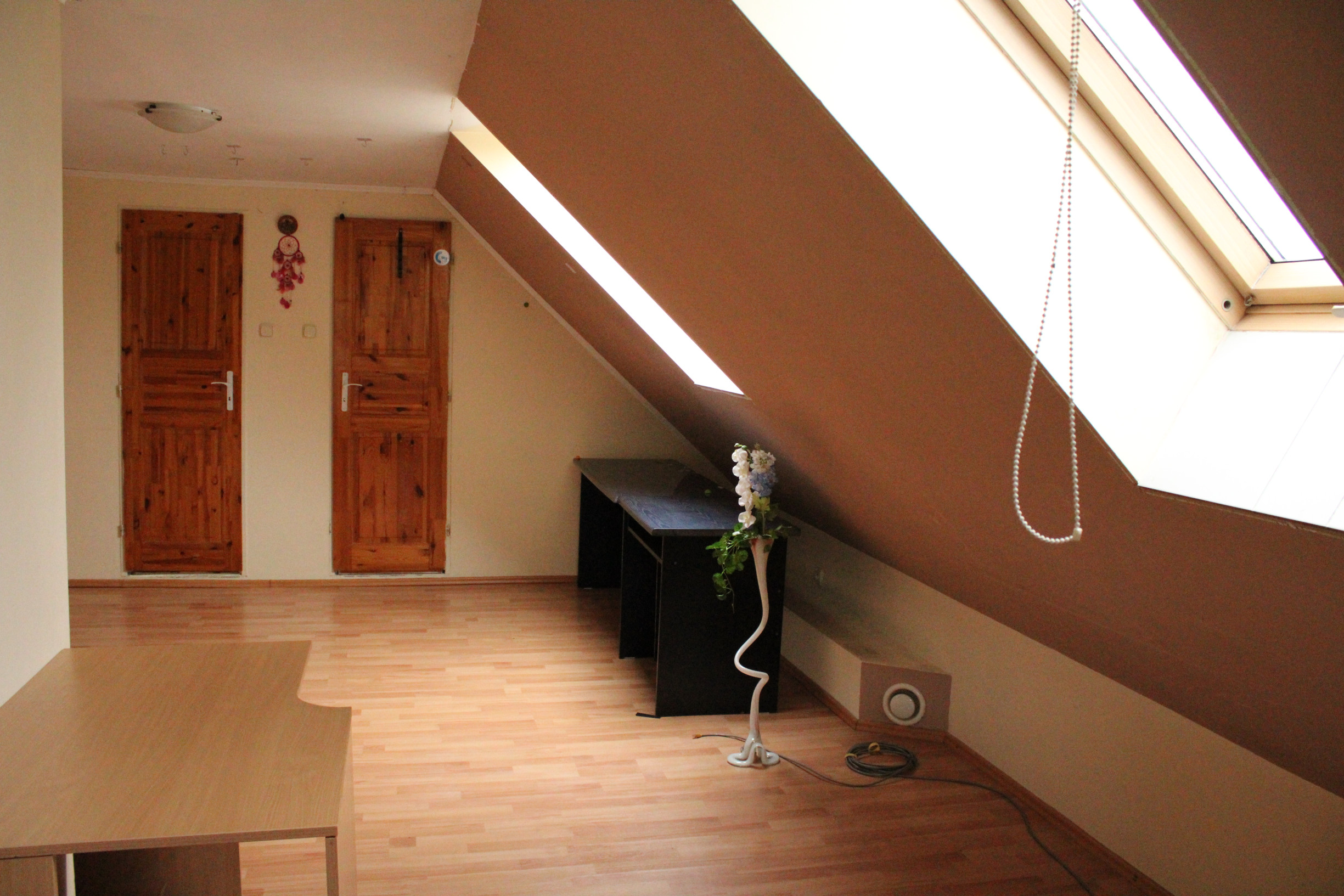 **Podkrovie:** V podkroví sa nachádza kúpeľňové jadro so sprchovacím kútom a umývadlom, ktoré je spojené s WC. Hlavným priestorom podkrovia je priestranná obytná izba so strešnými oknami, ktorá je v súčasnosti využívaná ako obývačka a má výstup na balkón. Podkrovie dopĺňa ďalší samostatný priestor určený na šatník. Dom je riešený bez podpivníčenia a ponúka komfortné bývanie rozložené na dvoch úrovniach s dostatkom úložných priestorov a praktickým rozdelením miestností.