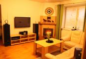 Bytová jednotka v rodinnom dome sa predáva kompletne zariadená. Kuchyňa je vybavená kuchynskou linkou na mieru v tvare L s kombinovaným sporákom plyn-elektrika, kombinovanou chladničkou s mrazničkou, mikrovlnkou, kanvicou a umývačkou riadu. Súčasťou je tiež jedalenský stôl so štyrmi kuchynskými stoličkami. V obývacej izbe zostáva kompletný nábytok vrátane sedačky, konferenčného stolíka a televízora. Spálňa je zariadená manželskou posteľou a skriňou. Detská izba obsahuje nábytok a valendu.