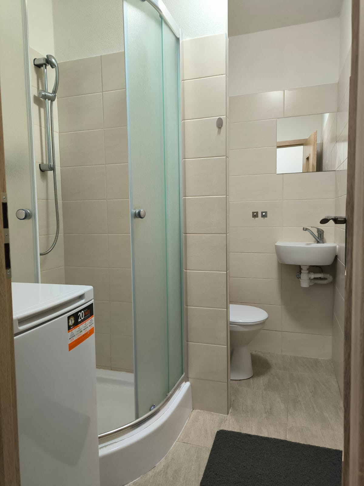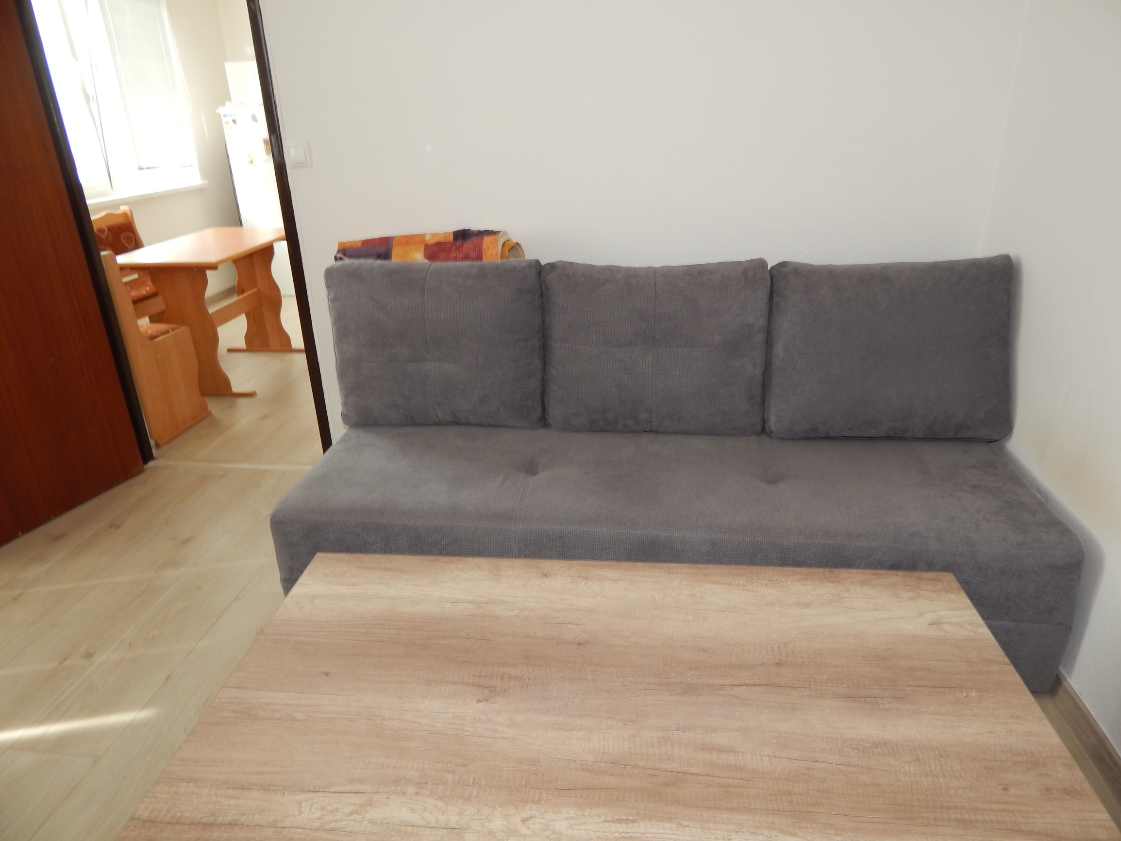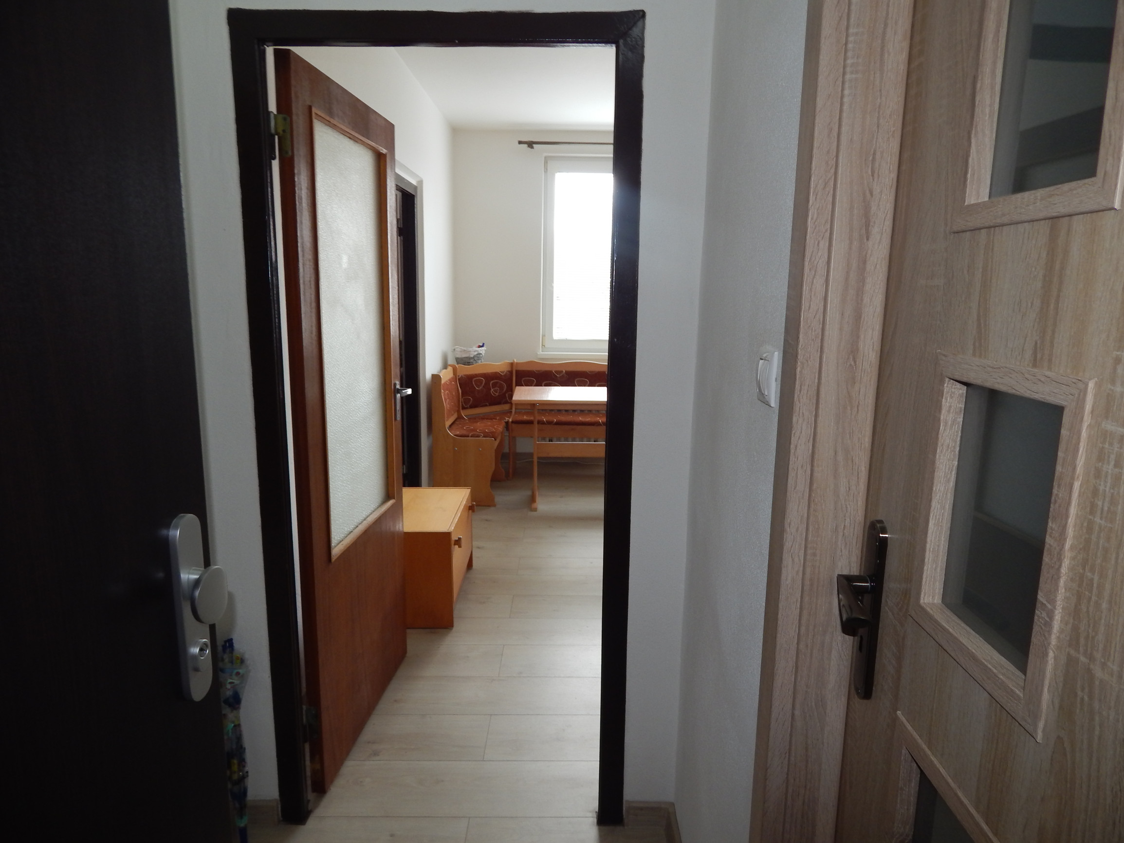 Byt pozostáva zo vstupnej chodby, priestrannej kuchyne, obývacej izby a kúpeľňového jadra spojeného s WC. Pri vstupe do bytu sa dostanete do chodby, ktorá poskytuje prístup do všetkých miestností. Kúpeľňové jadro je prakticky riešené v spojení s WC, čo optimálne využíva dostupný priestor. Priestranná kuchyňa ponúka dostatok miesta pre varenie a skladovanie, zatiaľ čo obývacia izba vytvára komfortný priestor na relaxáciu a trávenie voľného času.