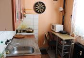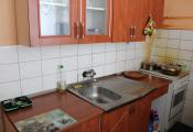 Kuchyňa je vybavená kuchynskou linkou, sporákom, digestorom a praktickou potravinovou skriňou pre dostatočný úložný priestor na potraviny a kuchynské potreby.