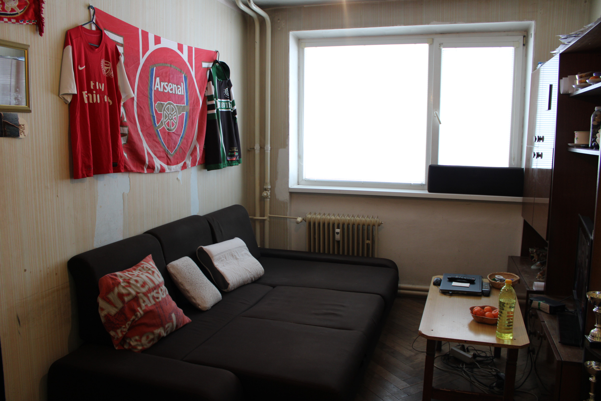 Byt sa nachádza na prízemí sedemposchodovej bytovky. Po vstupe do bytu sa ocitnete vo vstupnej predsieni, z ktorej vedie dlhá chodba, ktorá funkčne rozdeľuje jednotlivé miestnosti. Napravo od chodby nájdete samostatné WC, kúpeľňové jadro a oddelenú kuchyňu. Oproti vchodovým dverám sa nachádza vstup do priestrannej obývacej miestnosti, ktorá slúži ako prechod do druhej obytnej izby - spálne. Táto dispozícia zabezpečuje prirodzené oddelenie dennej a nočnej zóny bytu, pričom obývacia miestnosť tvorí centrálny bod celého obytného priestoru.
