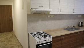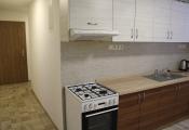 V kuchyni sa nachádza kuchynská linka s digestorom a kombinovaným sporákom, ktoré zabezpečujú plnú funkčnosť priestoru na prípravu jedál.