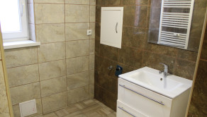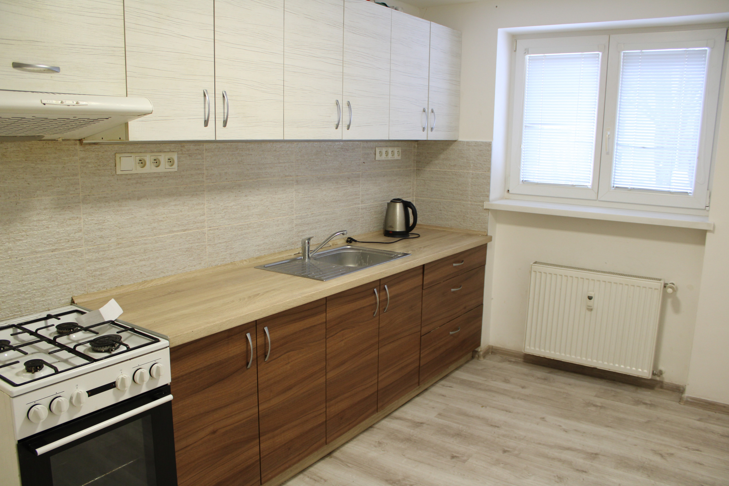 Byt je kompletne zrekonštruovaný a nachádza sa na prvom poschodí trojpodlažnej tehlovej bytovky s celkovou podlahovou plochou 57 m2 s príslušenstvom. Kompletná rekonštrukcia zahŕňala inštaláciu novej kuchynskej linky s digestorom a kombinovaným sporákom, výmenu celej elektroinštalácie, vodovodného a kanalizačného systému, rozvodov a kúrenia. V byte sú znížené sadrokartónové stropy s LED osvetlením, nové plávajúce podlahy v kuchyni, obývačke, izbe a spálni, nova dlažba na vstupnej chodbe, v kúpeľni a WC. Vykonané boli nové stierky na stenách, vybudované nové murované jadro, nový obklad v kúpeľni s novými batériami, radiátormi, sprchovacím kútom, umývadlom so skrinkou a záchodom. Kompletne boli vymenené elektrické zásuvky a vypínače, drevenné obložky a plné interiérové dvere, zakúpené nové bezpečnostné vchodové dvere s oceľovou zárubňou a realizovaná nova biela maľba. Bytový dom je tehlový, kompletne zateplený s novou strechou a fasádou, vstup je zabezpečený elektrickým vrátnikom a pred bytovkou je bezproblémové parkovanie. Byt je pripravený na okamžité nasťahovanie a je vhodný aj ako investičná príležitosť na prenajímanie.