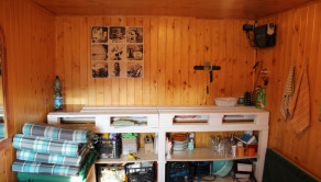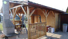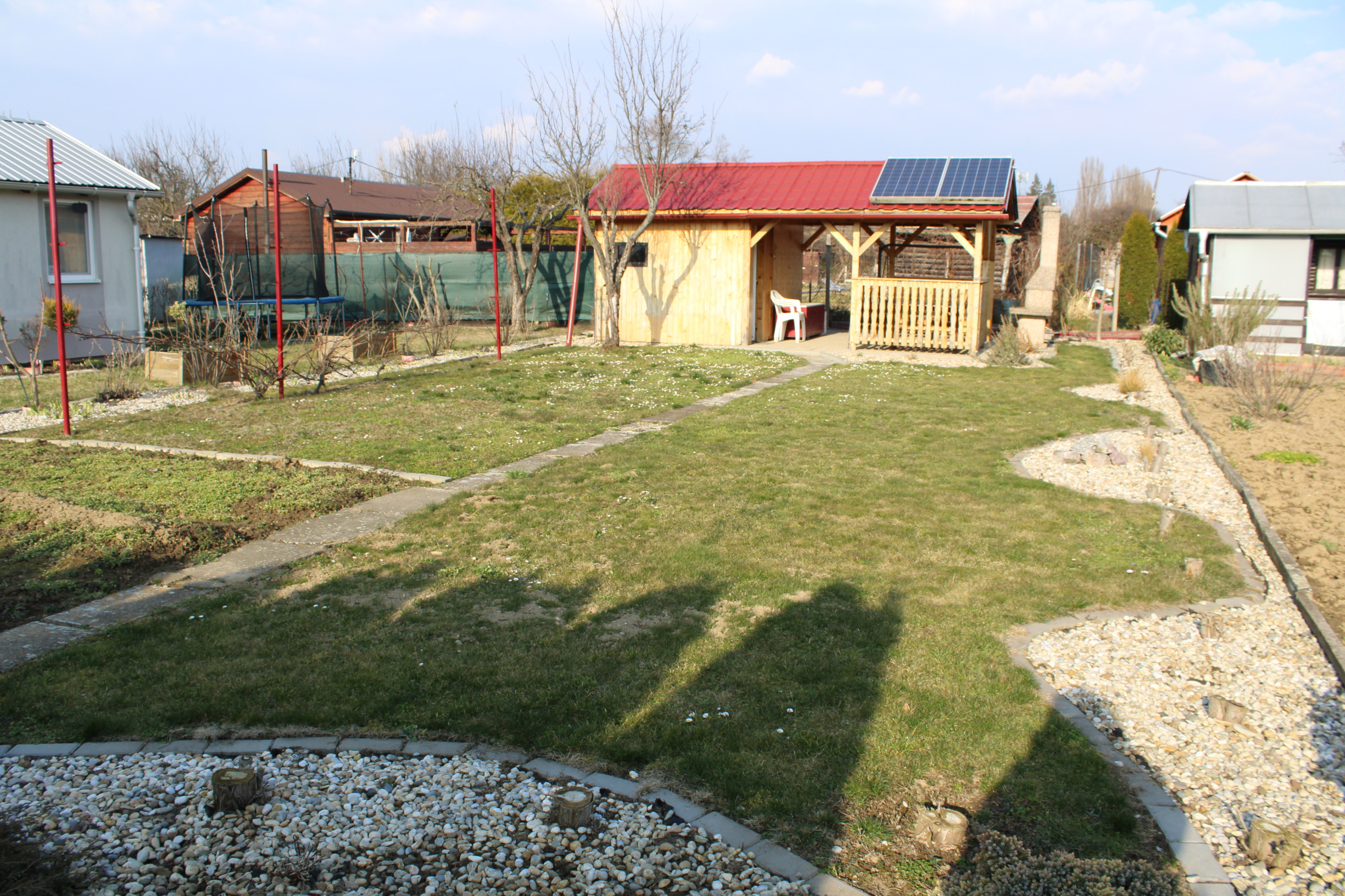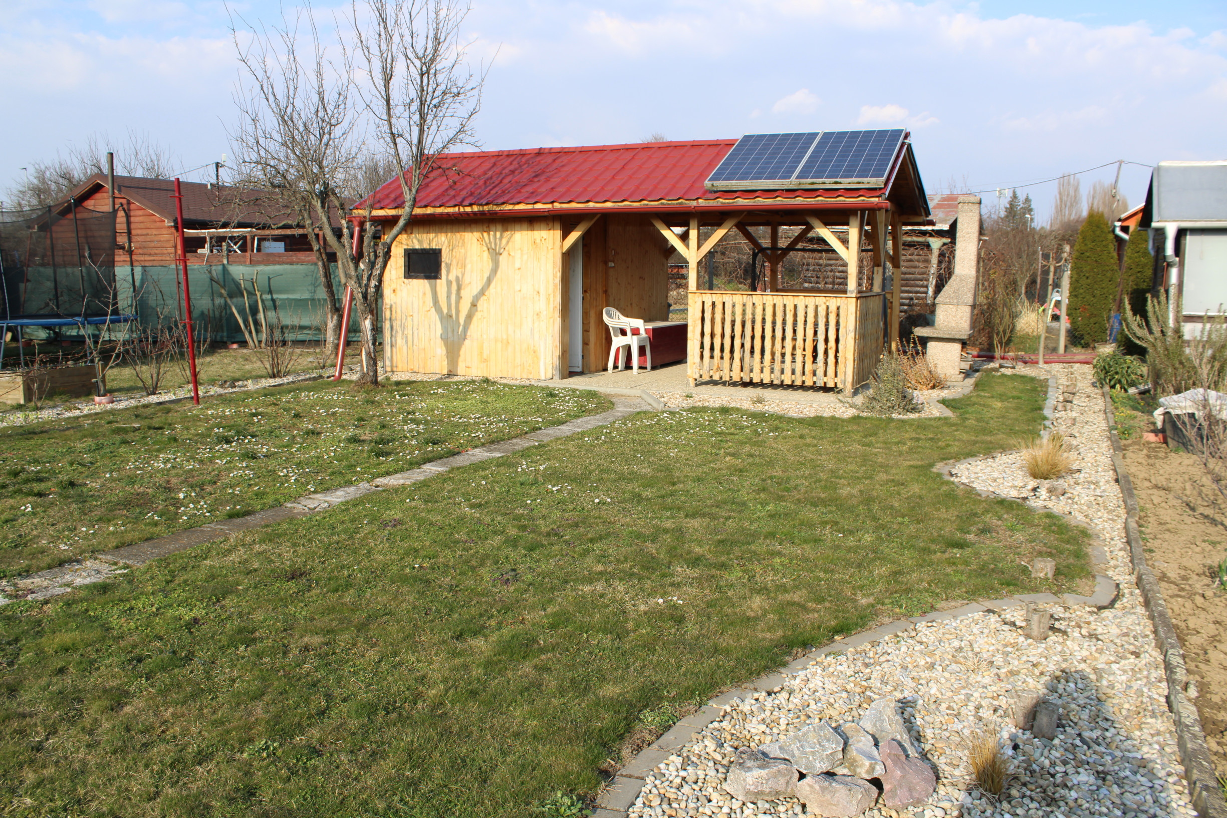 Technický stav: Drevená chatka prešla kompletnou rekonštrukciou a je postavená na betónovom základe bez súpisného čísla. Objekt disponuje jednou obytnou miestnosťou s povalovým úložným priestorom a zastrešenou terasou, na ktorej sa nachádza záhradný krb, drevený stôl so stoličkami a záhradná hojdačka. Elektrická energia je zabezpečená prostredníctvom fotovoltaickych panelov. Pozemok je slnečný, rovinatý a pravidelne udržiavaný s vysadenými drevinami a kríkmi, vrátane hrozna a sliviek. Na pozemku je zavedená užitková voda určená na polievanie záhrady a studňa.
