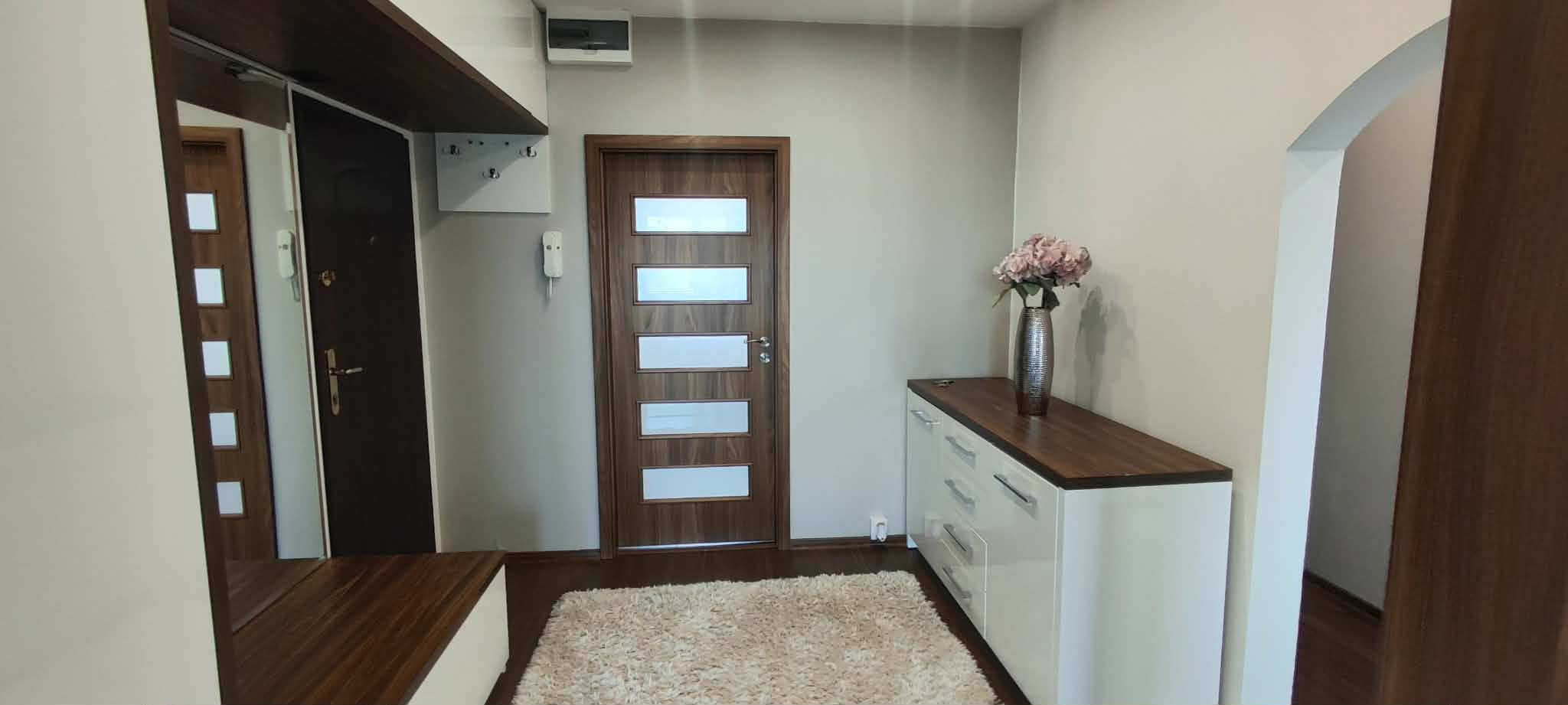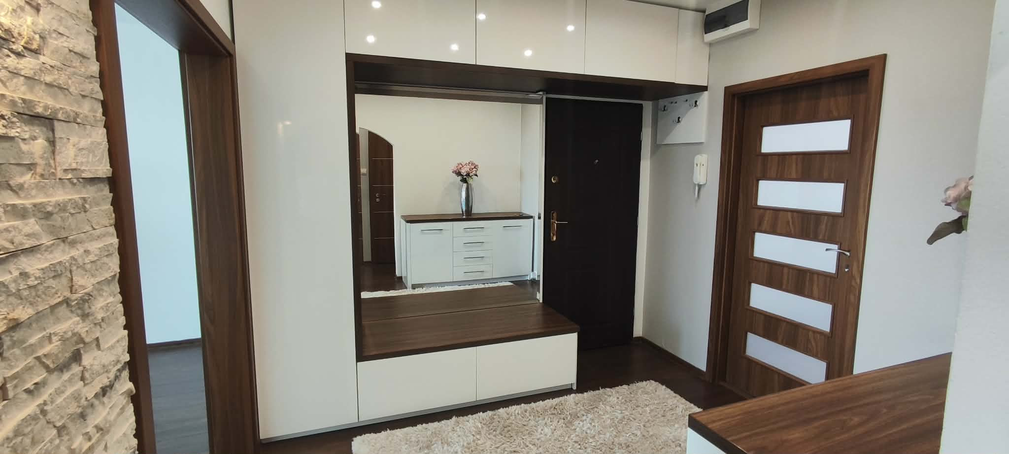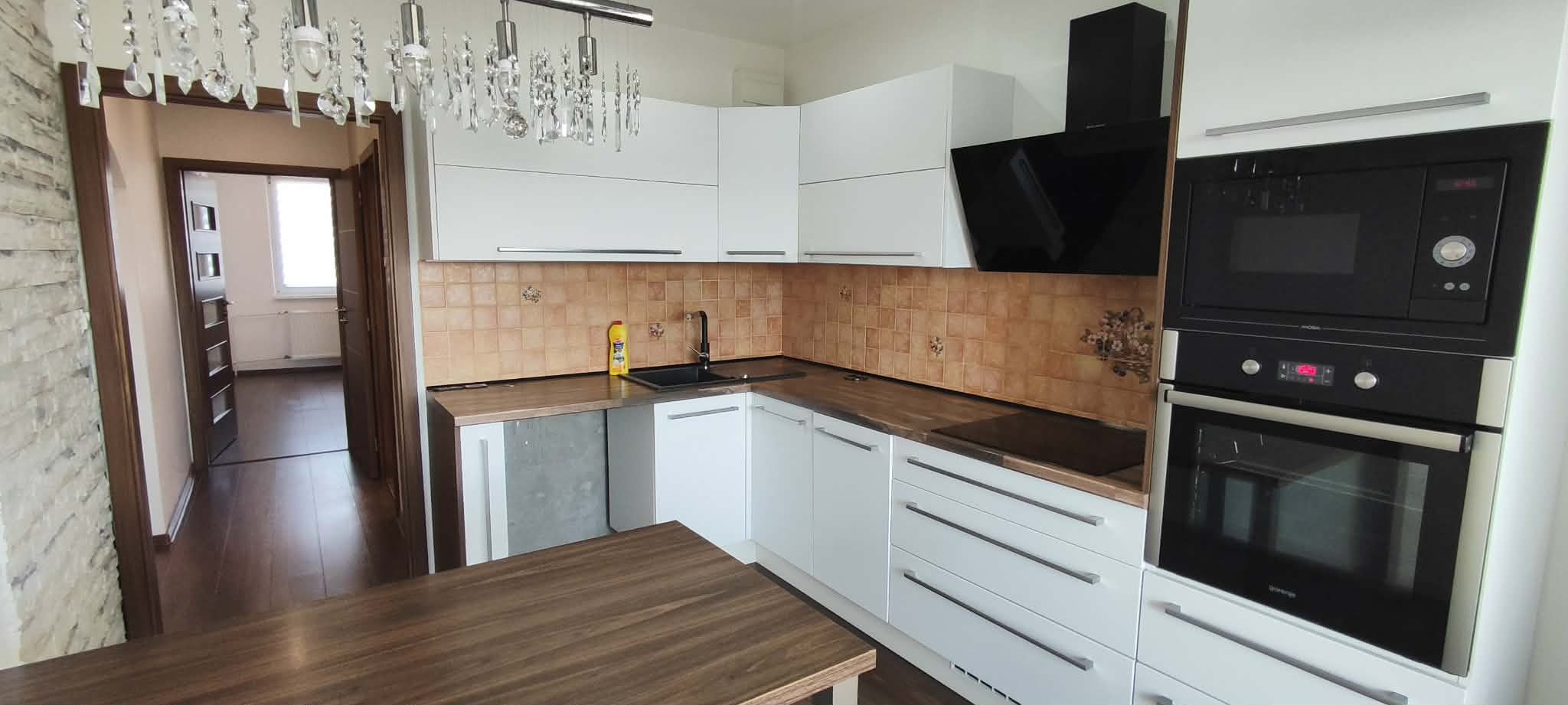 V kuchyni sa nachádza kuchynská linka na mieru so vstavanými spotrebičmi - sklokeramickou platňou, digestorom, umývačkou riadu značky Mora, elektrickou rúrou a mikrovlnkou. K vybaveniu patrí aj jedálensky stôl a koberec. Na chodbe je umiestnená chodbová zostava so zrkadlom, komoda a koberec.