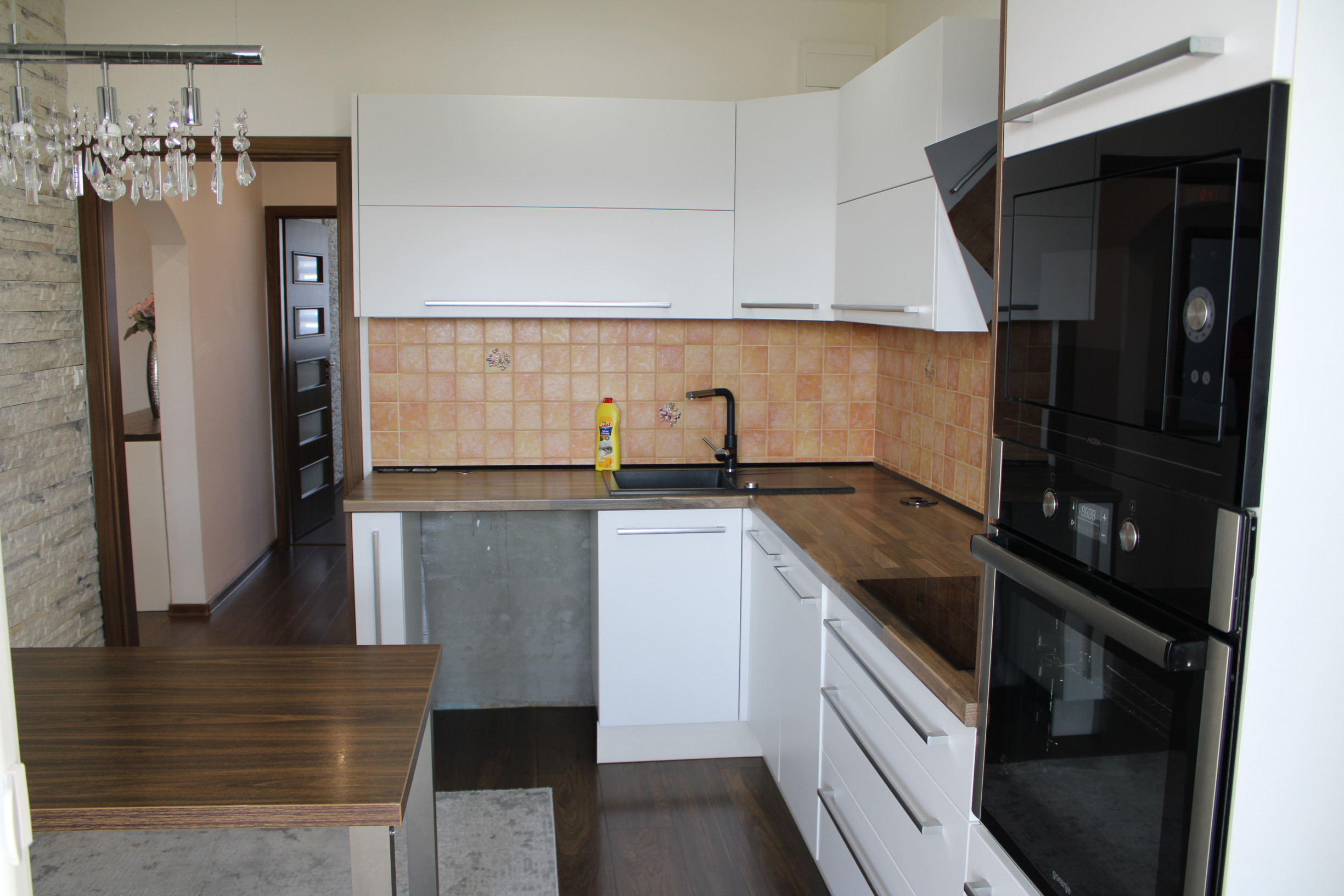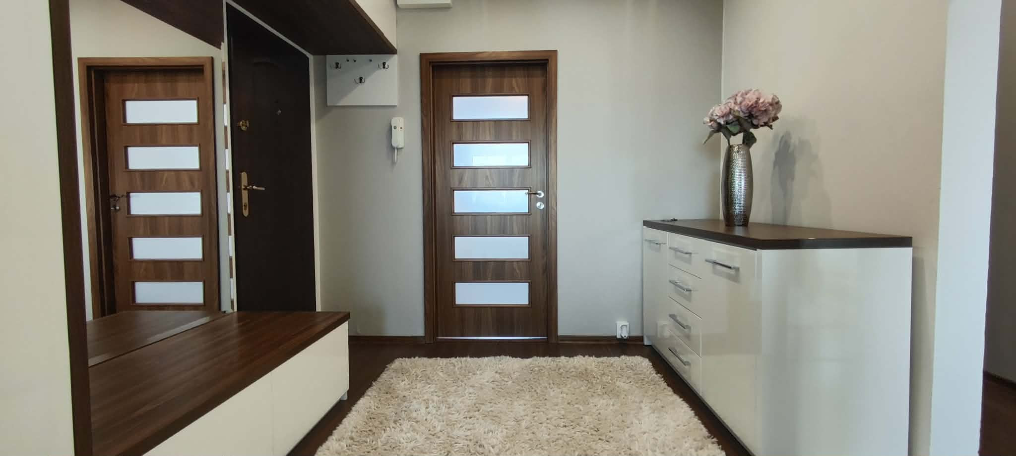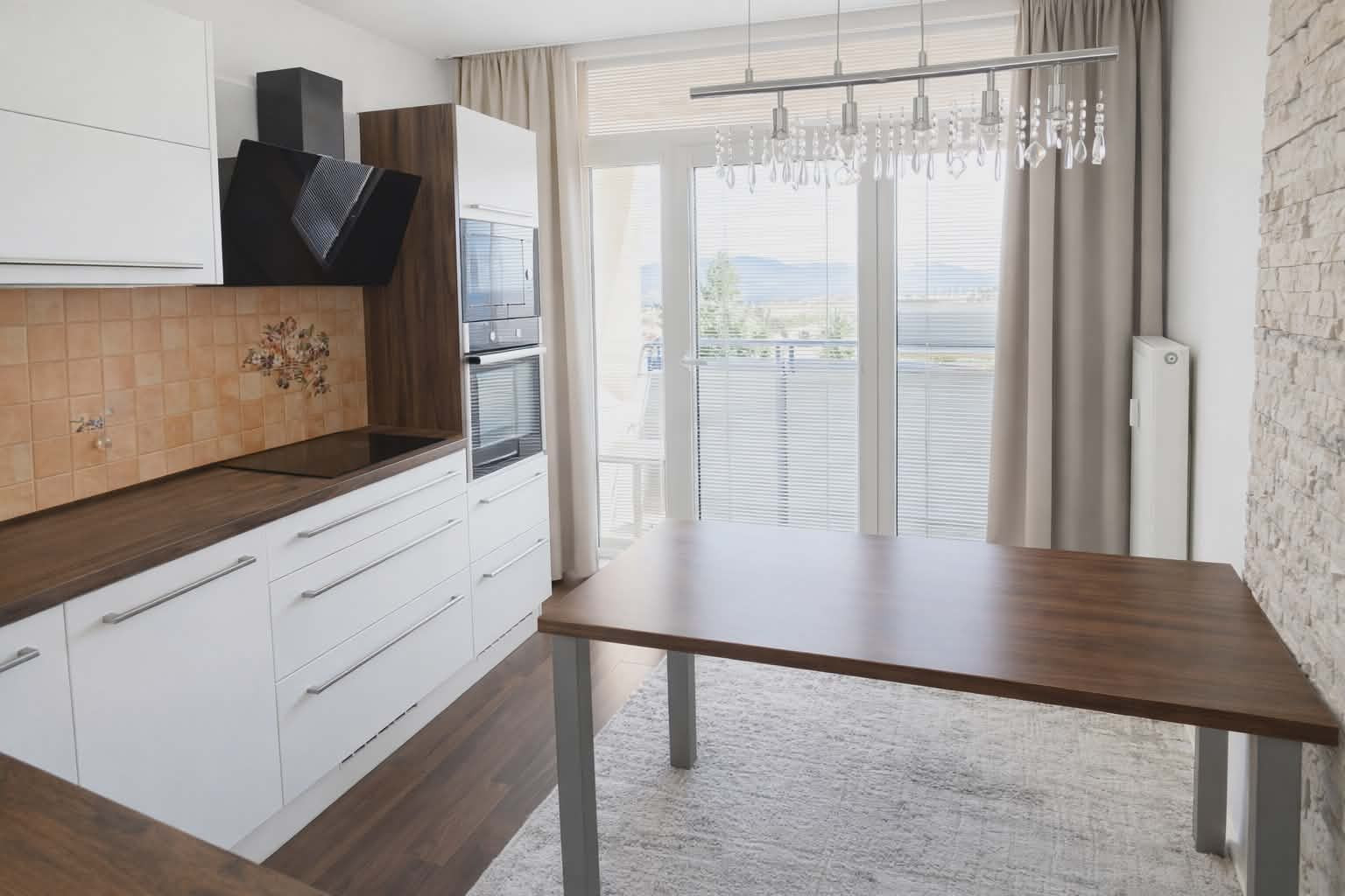 V kuchyni sa nachádza kuchynská linka na mieru so vstavanými spotrebičmi - sklokeramickou platňou, digestorom, umývačkou riadu značky Mora, elektrickou rúrou a mikrovlnkou. K vybaveniu patrí aj jedálensky stôl a koberec. Na chodbe je umiestnená chodbová zostava so zrkadlom, komoda a koberec.