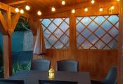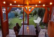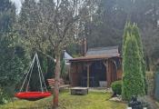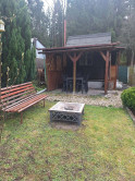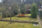 Záhradná chatka predstavuje pôvodnú drevostavbu postavenou na betónovom základe s kompletným podpivničením o rozlohe 11 m². Objekt má vlastné súpisné číslo a je zastavaný na parcele s nádvorím. Strecha je riešená pozinkovaným plechom a do chatky je zavedená elektrická energia 230V s platnou revíznou správou. Chatka obsahuje jednu obytnú miestnosť a zastrešenú terasu. Celý pozemok s rozlohou 385 m² je kompletne oplotený a má prevažne rovinatý charakter. Na pozemku sa nachádza užitková voda určená na polievanie a na konci záhrady stojí menšia drevená stavba, ktorá obsahuje miestnosť na uskladnenie dreva, priestor na odkladanie záhradného náradia a suché WC. Slnečný pozemok je osadený tujami, okrasnými drevinami, kríkmi červených malín a ovocnými stromami vrátane jabloní, hrušiek a sliviek.