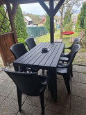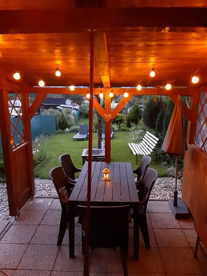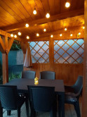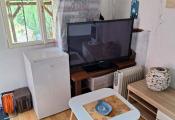 Chatka sa predáva komplet zariadená. V interiéri sa nachádza konferenčný stolík, stoličky, chladnička,mikrovlnka, televízor, elektrický ohrievač. Na terase zostáva zahradný stôl so 4 stoličkami, hojdačka, záhradné náradie a kosačka.