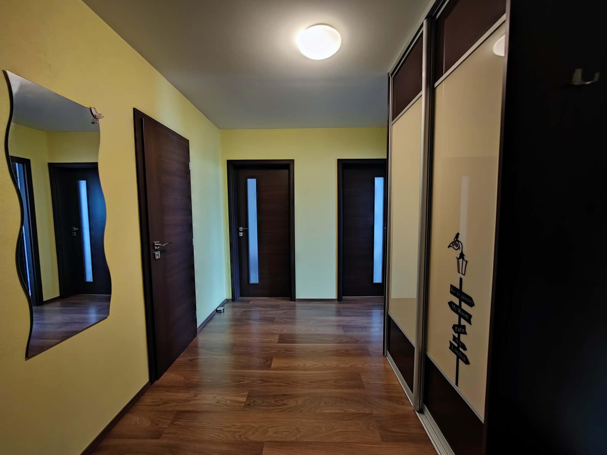 Byt prešiel kompletnou rekonštrukciou, v rámci ktorej boli vymenené okná so žalúziami, realizované nové stierky, radiátory a znížené stropy v celom byte s LED osvetlením v obývacej miestnosti. Bola kompletne obnovená elektroinštalácia a vykonané vodoinštalačné práce, pričom došlo k zmene dispozície bytu a zväčšeniu kúpeľňového jadra, ktoré je vybavené rohovou vaňou, umývadlom, kúpeľňovým nábytkom so zrkadlom a osvetlením. V celom byte sú položené plavajúce podlahy s výnimkou kúpeľne, kde sa nachádza keramická dlažba. Interiér dopĺňajú interiérové dvere s drevenými obložkami a byt je zabezpečený bezpečnostnými dverami značky Scherlock. Súčasťou bytu je murovaná pivnica umiestnená v suteréne bytového domu.