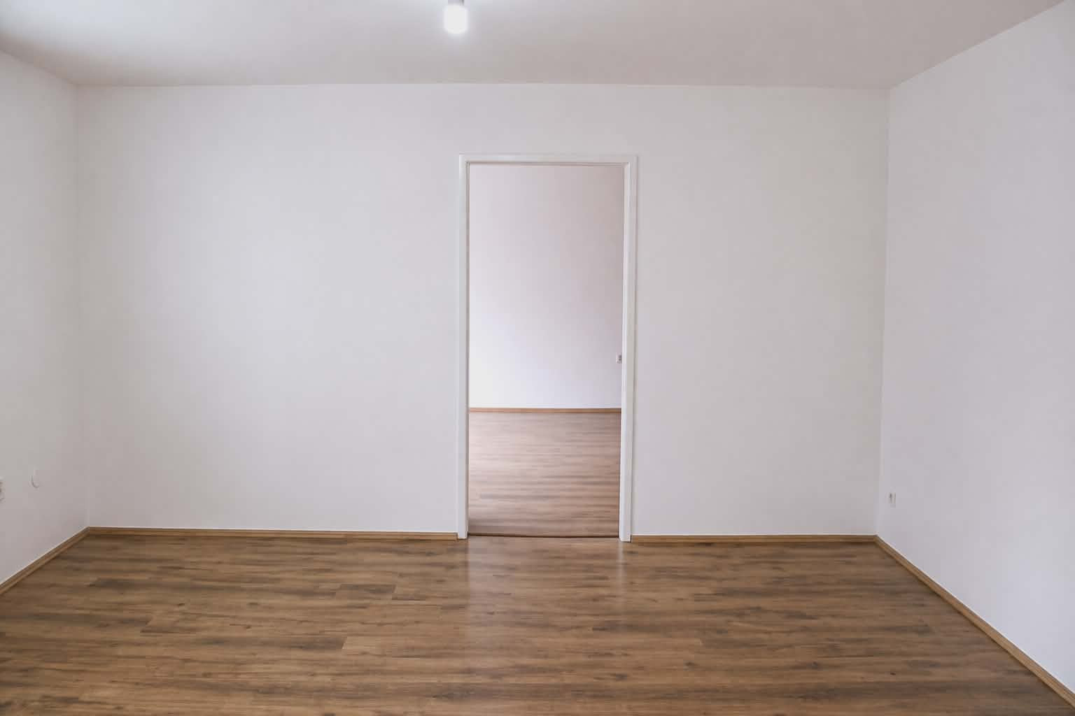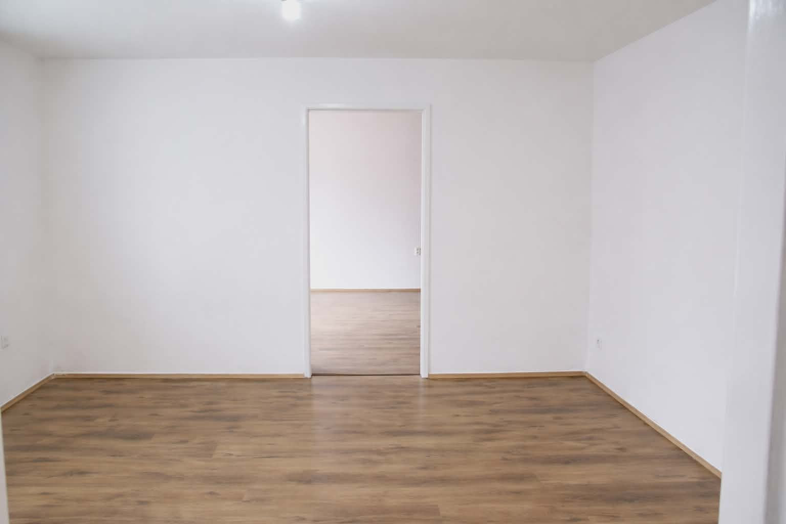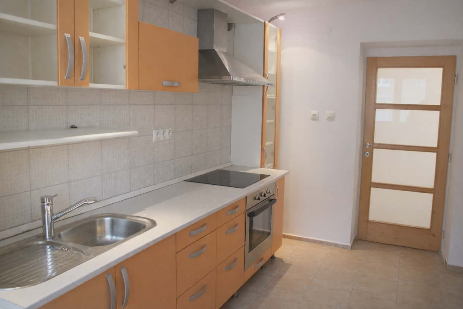 Dispozícia bytu je prakticky navrhnutá: vstupná chodba poskytuje dostatok priestoru. Vľavo sa nachádza vstup do kuchyne, ktorá je plne vybavená kuchynskou linkou, sporákom, digestorom a praktickou potravinovou skriňou. Priamo oproti vstupným dverám je kúpeľňové jadro s WC, vaňou, umývadlom a samostatným sprchovacím kútom. Z chodby sa ďalej vchádza do troch obytných izieb. Jedna z izieb je priechodná, čo ponúka flexibilitu pri využití priestoru. V jednej z obytných izieb je navyše vstavaná skriňa na mieru, ktorá maximalizuje úložný priestor.