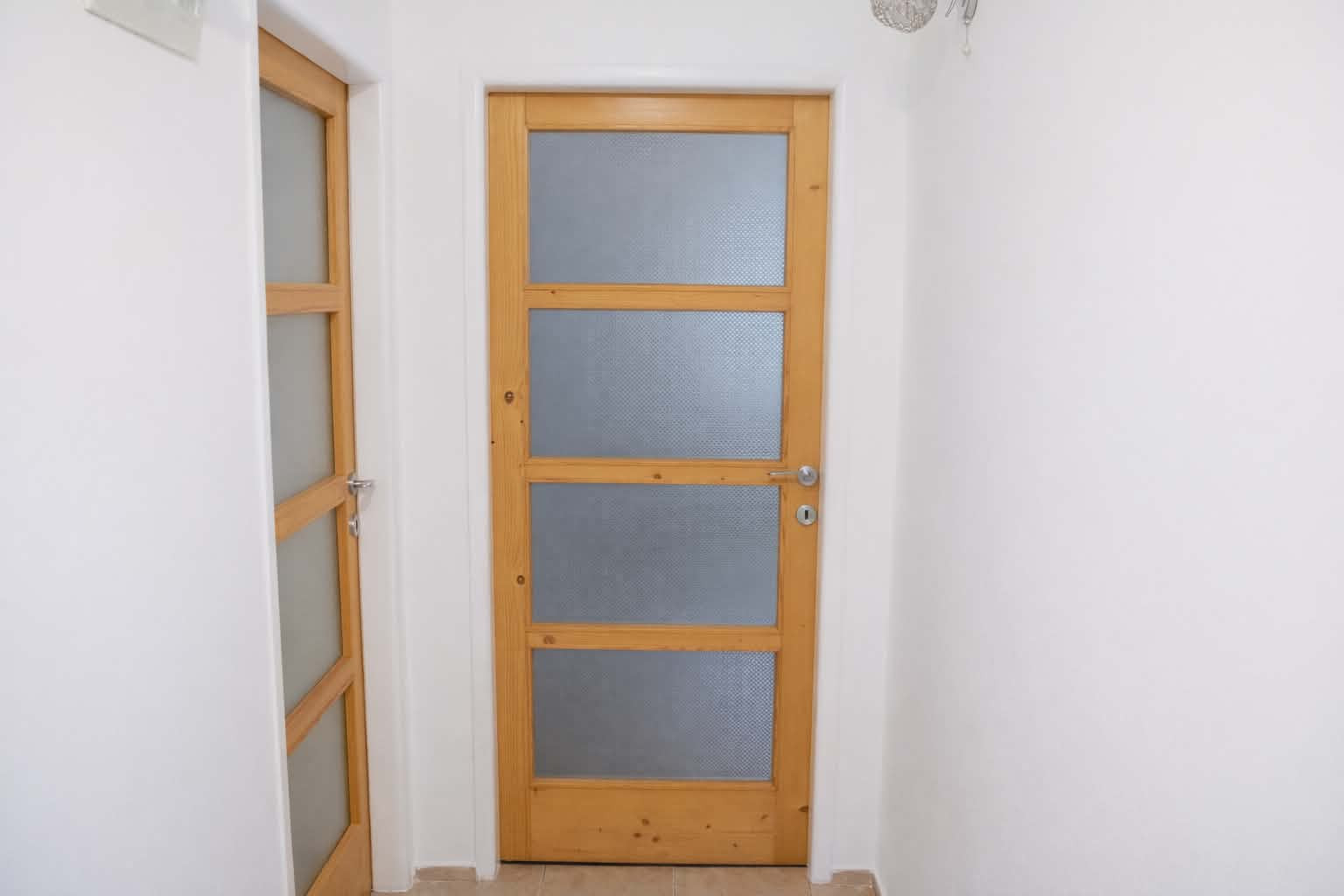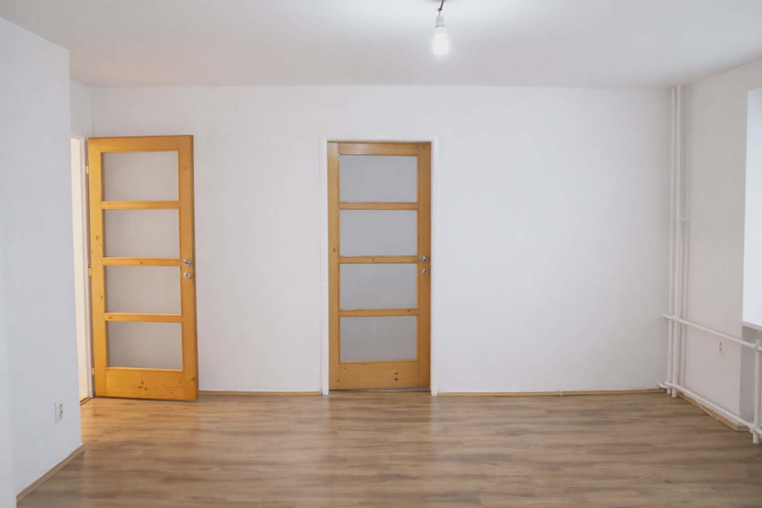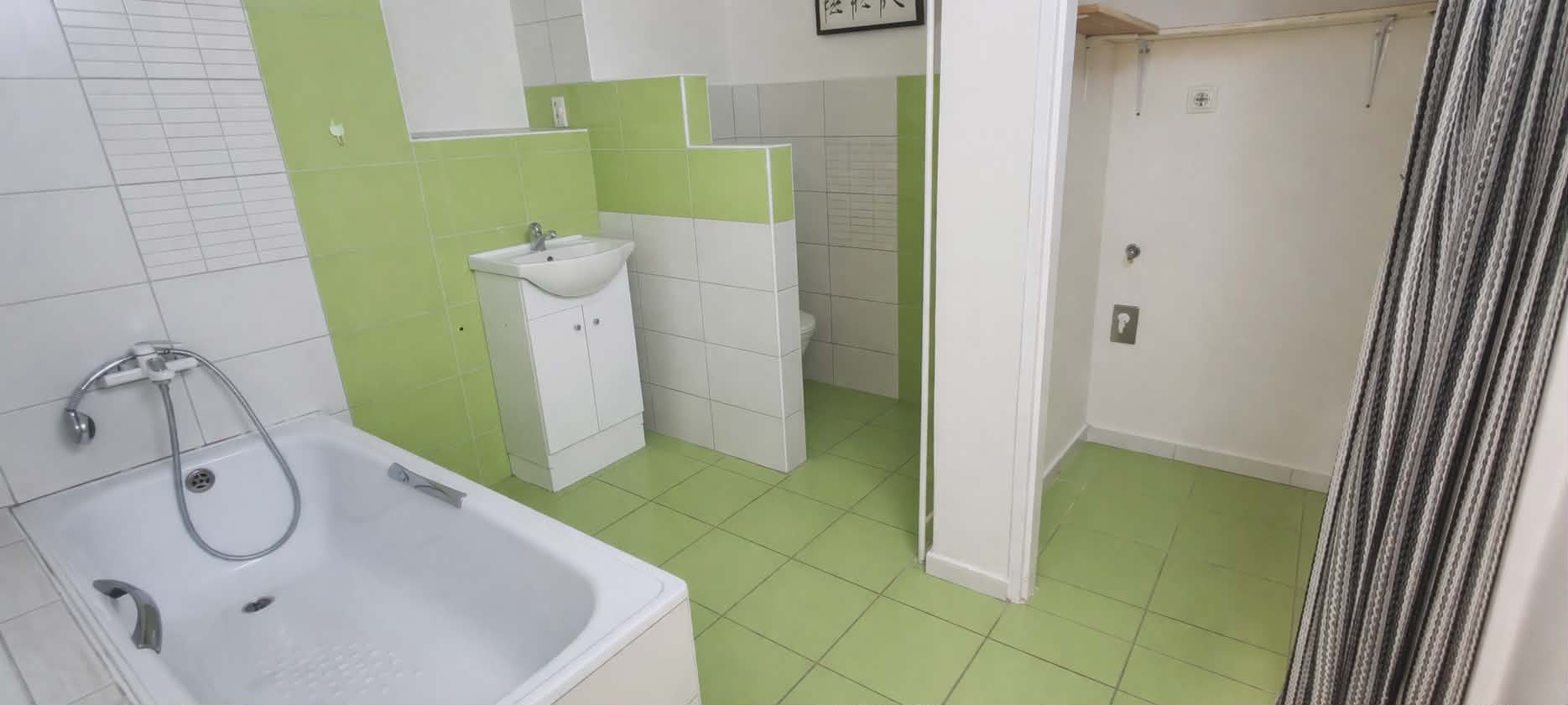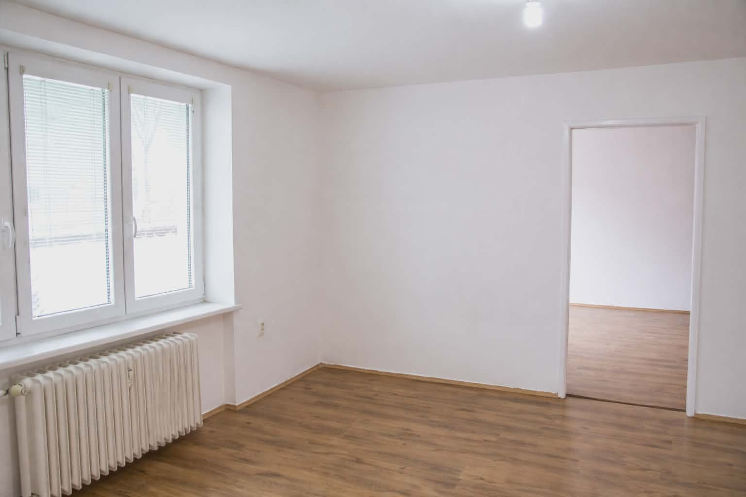 Dispozícia bytu je prakticky navrhnutá: vstupná chodba poskytuje dostatok priestoru. Vľavo sa nachádza vstup do kuchyne, ktorá je plne vybavená kuchynskou linkou, sporákom, digestorom a praktickou potravinovou skriňou. Priamo oproti vstupným dverám je kúpeľňové jadro s WC, vaňou, umývadlom a samostatným sprchovacím kútom. Z chodby sa ďalej vchádza do troch obytných izieb. Jedna z izieb je priechodná, čo ponúka flexibilitu pri využití priestoru. V jednej z obytných izieb je navyše vstavaná skriňa na mieru, ktorá maximalizuje úložný priestor.