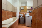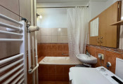 - Nové murované jadro s klasickou vaňou, umývadlom, páková batéria, kúpeľňový nábytok, zrkadlo, WC a okno na vetranie.