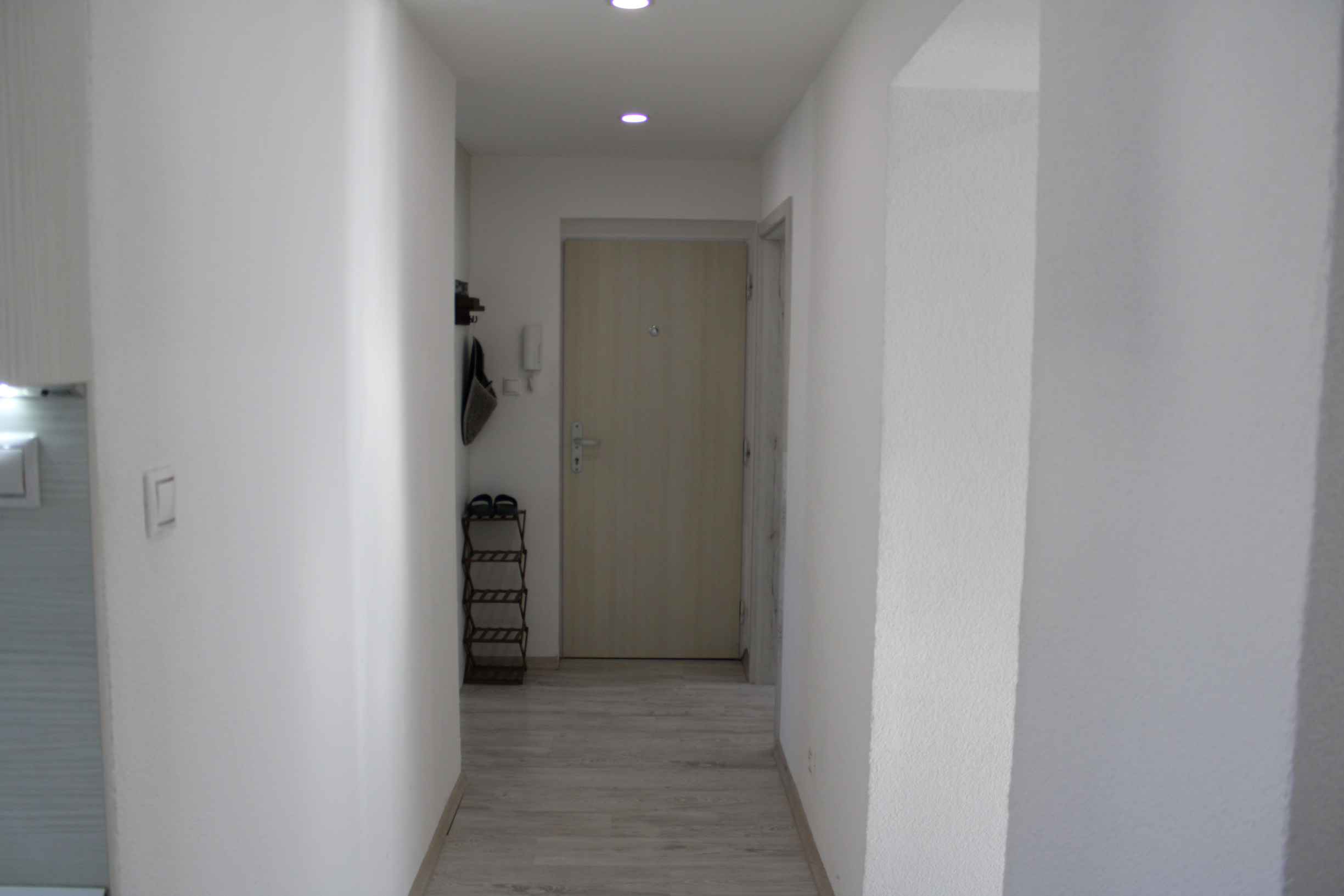 Byt je kompletne zrekonštruovaný s vymenou všetkých kľúčových prvkov. V rámci rekonštrukcie boli nainštalované nové plastové okná so žaluziami, kompletne obnovené stierky a elektroinštalácia v celom byte, znižené sadrokartonové stropy s moderným bodovým LED osvetlením. Kúpeľňa má murované jadro s rohovou vaňou, kompletne novým kúpeľňovým nábytkom, umývadlom so zrkadlom a osvetlením spojeným s WC, ako aj oknom na vetranie. V kúpeľni je umiestnený plynový kotol na kúrenie a ohrev teplej vody, čím byt disponuje vlastným kúrením. Všetky interiérové dvere a obložky boli vymenené za nové. Vstupné dvere sú bezpečnostné značky Sherlock.
