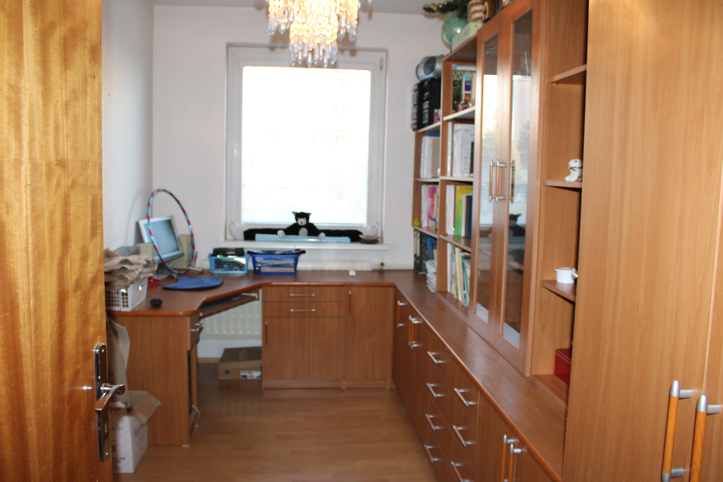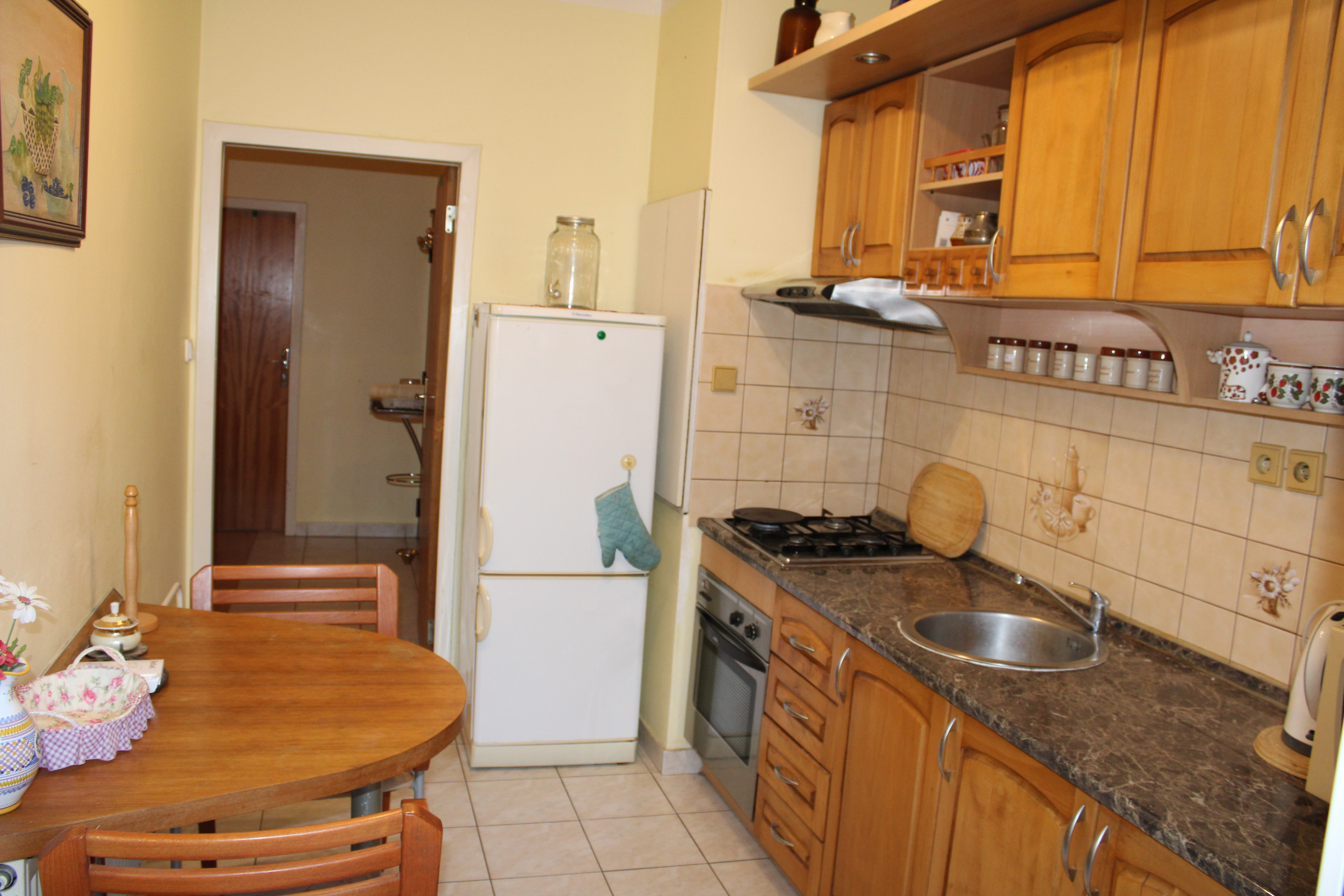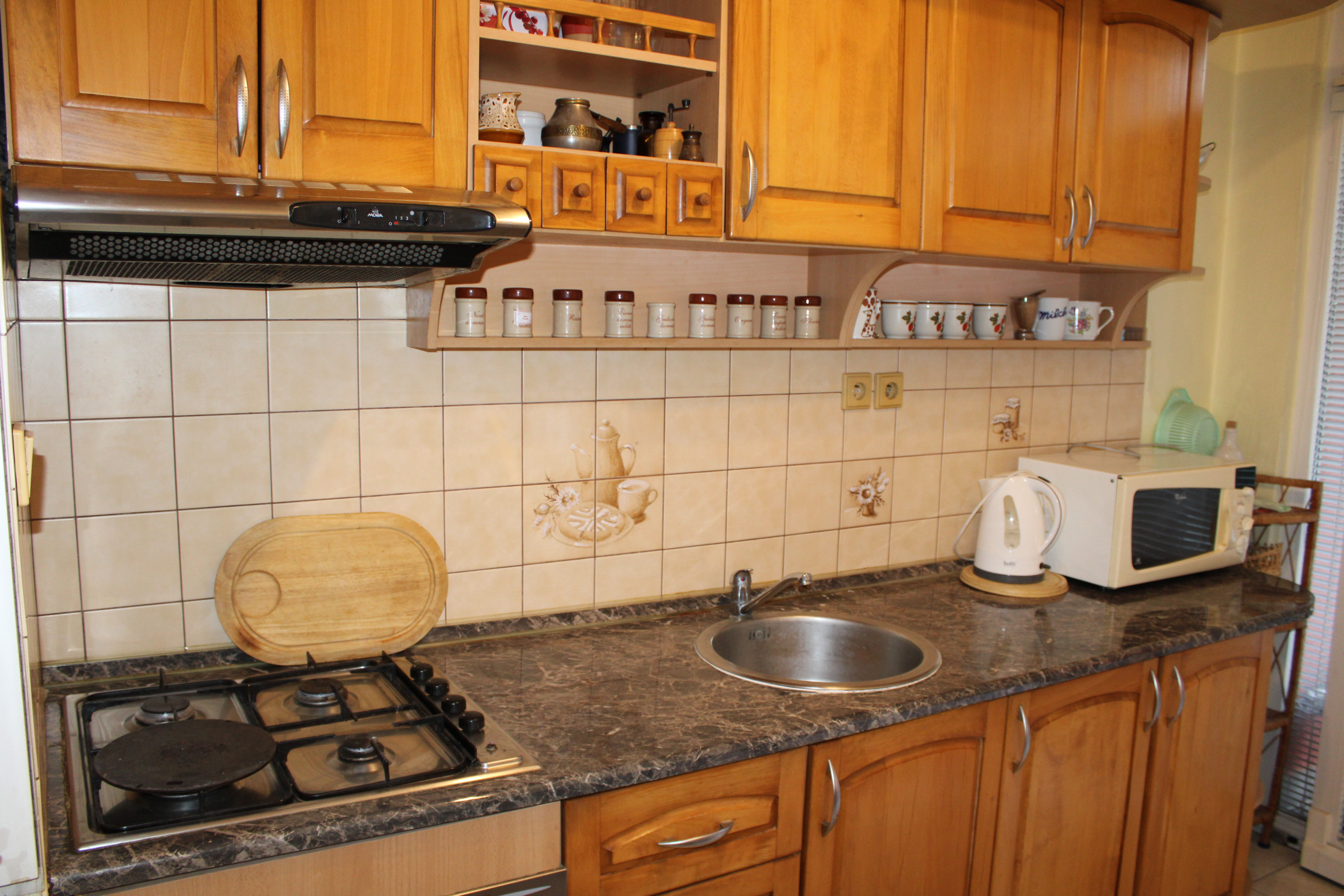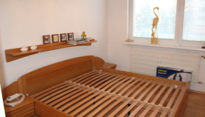 Kuchyňa je vybavená kuchynskou linkou s plynovým sporákom v kombinácii s elektrickou rúrou a digestorom. Súčasťou kuchyne je tiež kuchynský stôl so stoličkami. V spálni sa nachádza vstavaná skriňa zhotovená na mieru, ktorá zostáva novému majiteľovi.