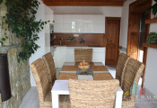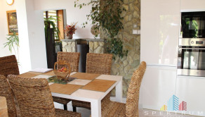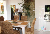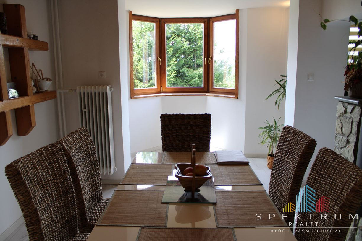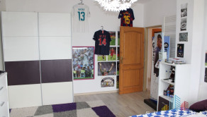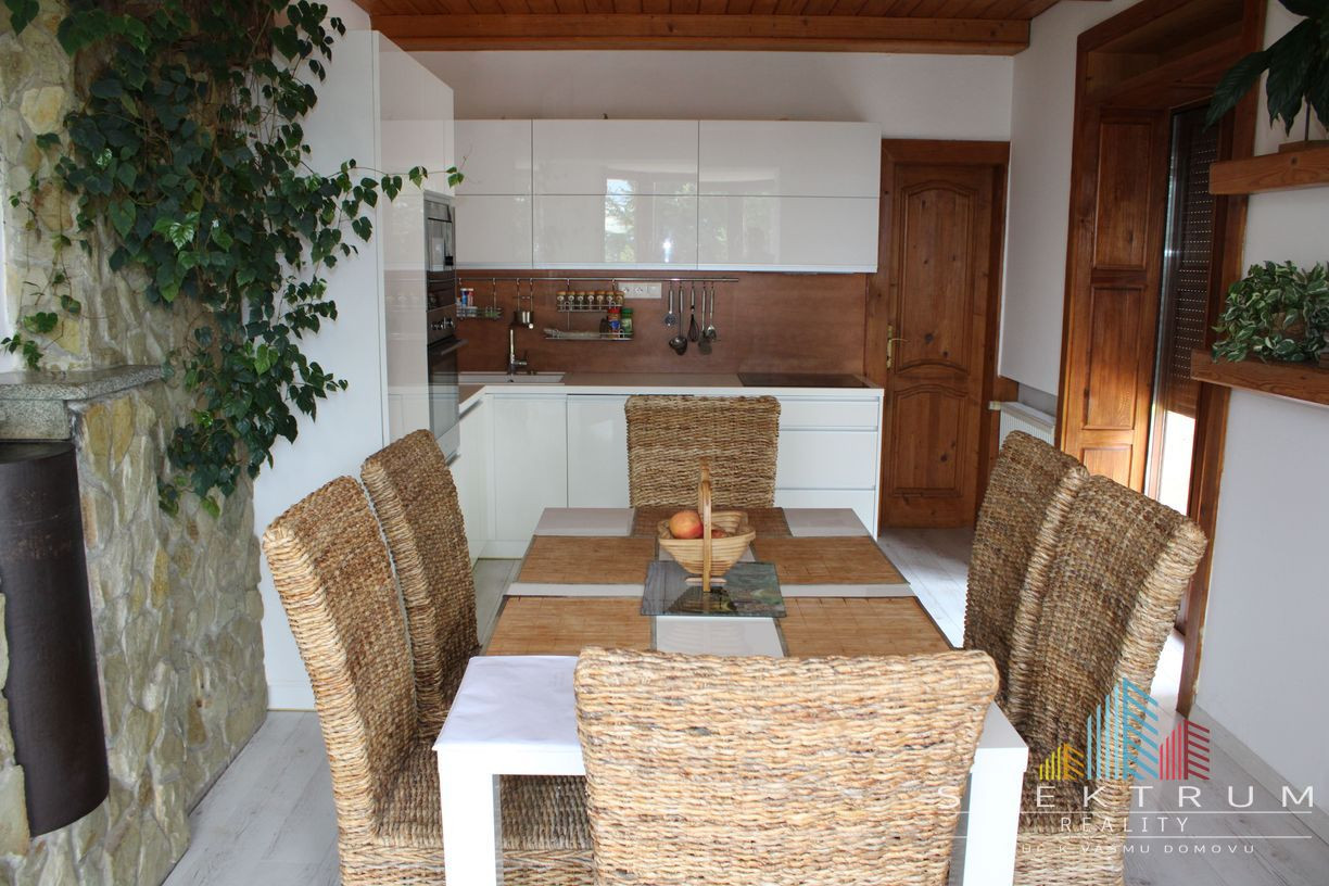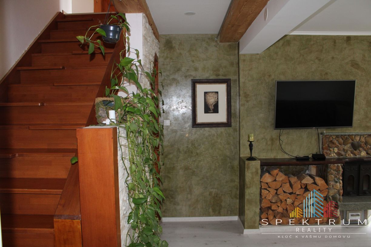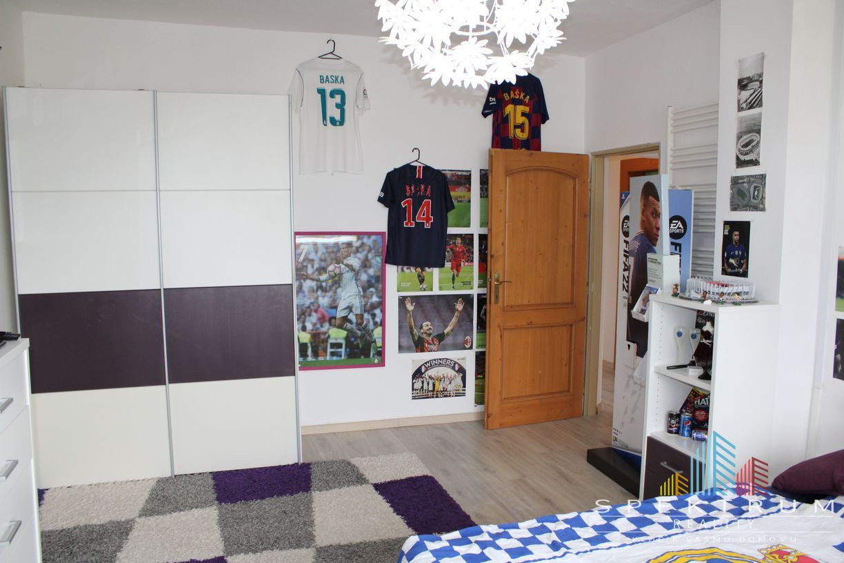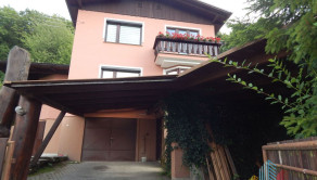 Dom sa rozprestiera na troch úrovniach s premysleným dispozičným riešením. V suteréne sa nachádza garáž, kotolňa a dva technické priestory zabezpečujúce komfort a skladovanie. Na prízemí vás privíta priestranná chodba s elegantným dreveným schodiskom. Dispozícia prízemného podlažia zahŕňa útulnú spálňu, praktický šatník, funkčne riešenú kuchyňu a komfortnú obývaciu izbu. K dispozícii je tiež samostatné WC, kúpeľňa a špajza pre dodatočné úložné možnosti. Na druhom nadzemnom podlaží nájdete tri izby, chodbu a kúpeľňu s WC. Z tohto podlažia máte prístup na balkón a menšiu terasu, ktoré rozširujú obytný priestor o vonkajšie relaxačné zóny. Súčasťou nehnuteľnosti je aj priestranná zastrešená terasa za domom, ktorá poskytuje ideálne miesto na oddych a spoločenské stretnutia v každom počasí.