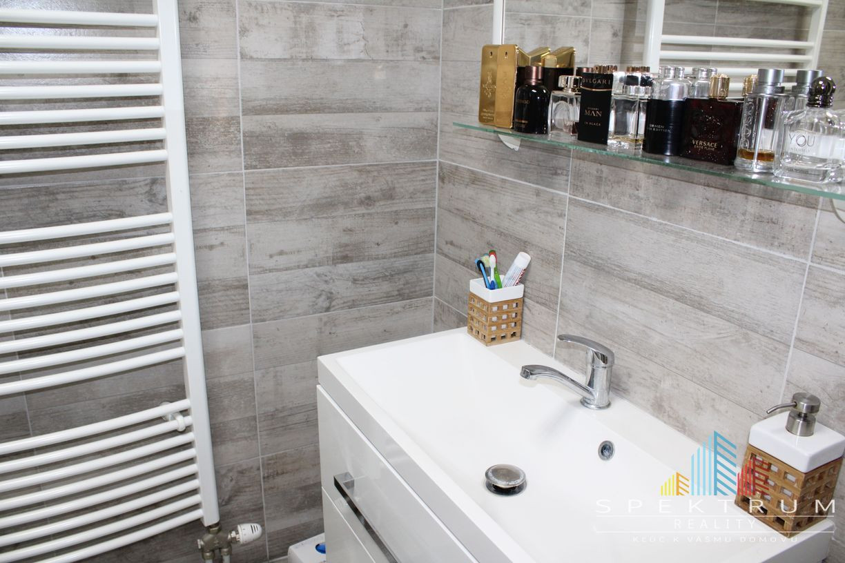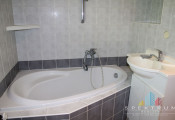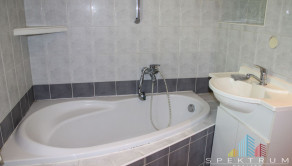 -Vybavenie kúpeľní: plastová rohová vaňa, umývadlo, vodovodné batérie-pákové nerezové so sprchou, splachovací záchod bez umývadla.